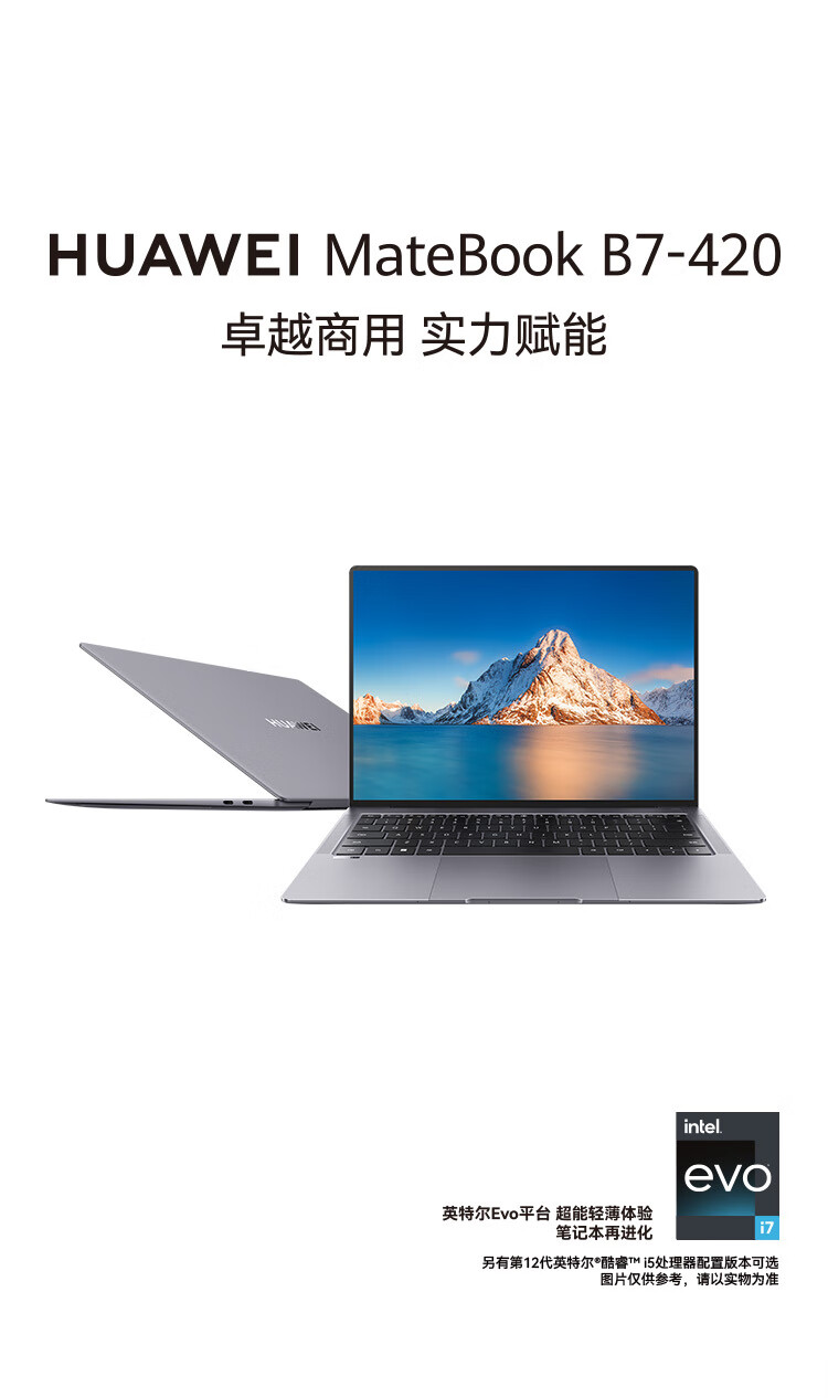 華為筆記本電腦 MateBook B7-420 14.2英寸輕薄本 (i5-1240P 16G 512G)WIN11 深空灰 自營