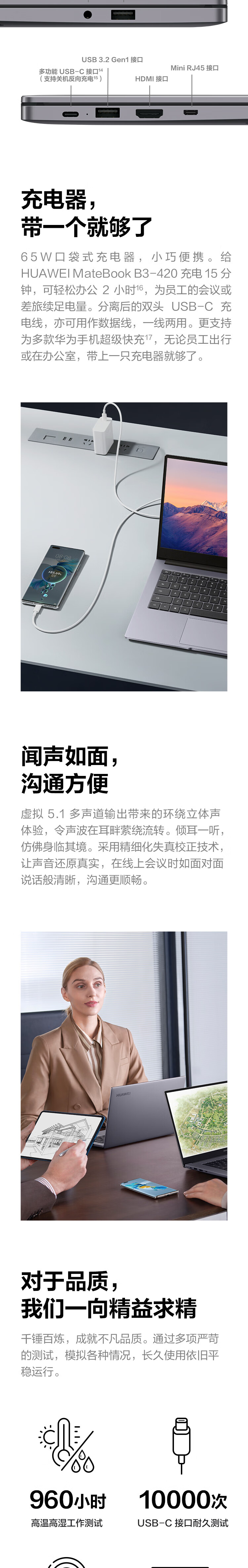 華為筆記本電腦 MateBook B3-420 14英寸輕薄本 (i5-1135G7 16G 512G) 深空灰 自營