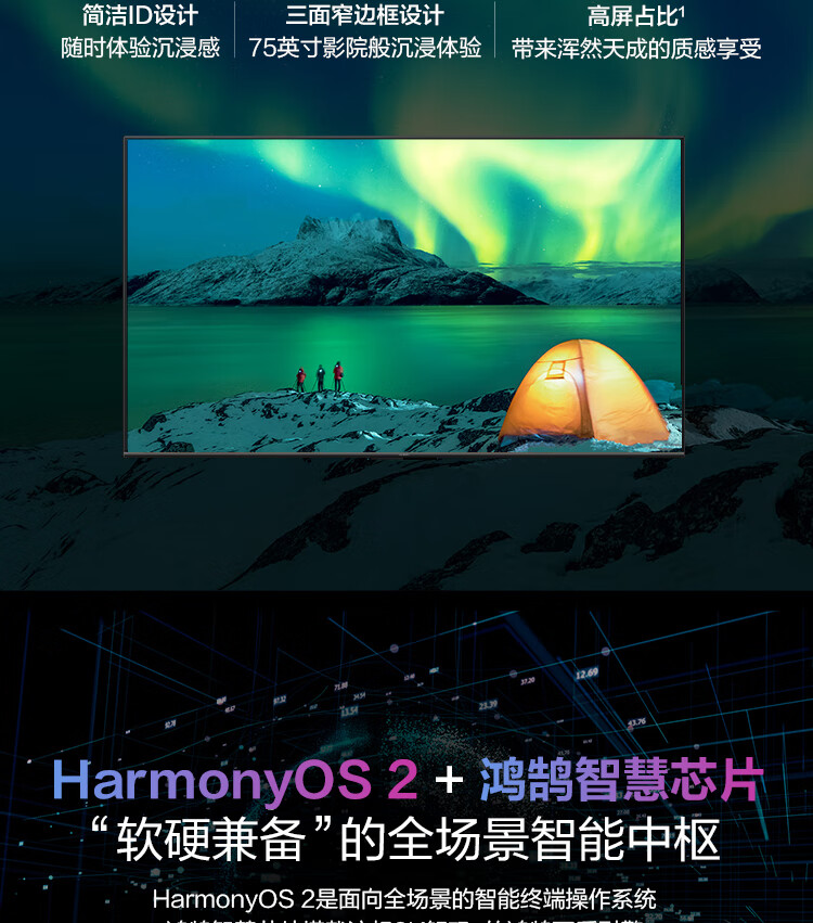 華為智慧屏 SE 75英寸 超薄全面屏電視 8K解碼鴻鵠畫質(zhì) 4K超高清MEMC智能液晶電視HD75DESA 2GB+16GB 自營