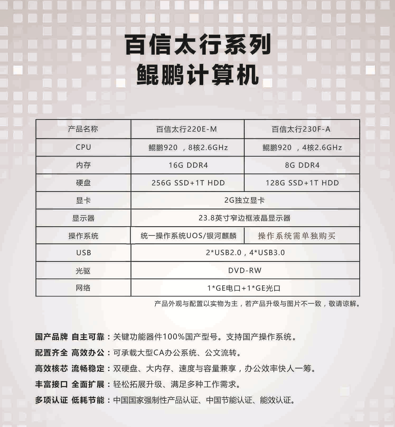 百信太行230F-A 行業(yè)增強版 (銀河麒麟OS+16G內(nèi)存+1T硬盤/23.8英寸顯視器) 自營