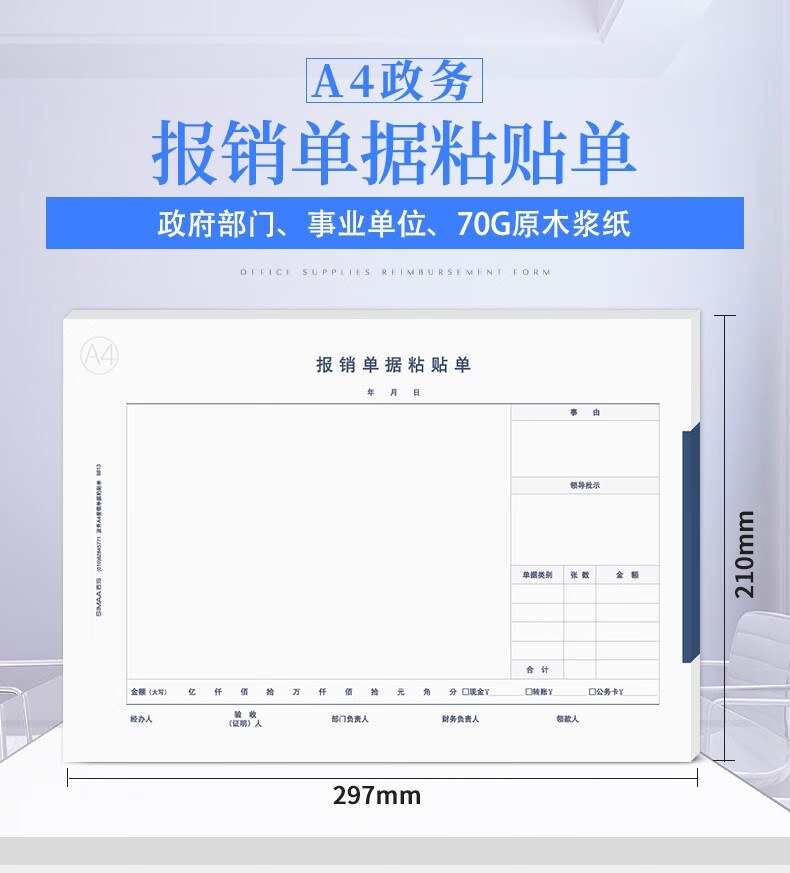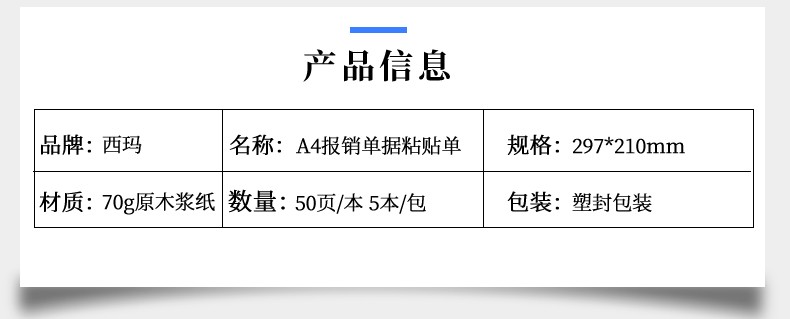 西瑪表單 西瑪A4政務報銷單據(jù)粘貼單297*210mm 50頁/本--5本/包 12包/箱(單包價-整箱售-拍12組) 自營