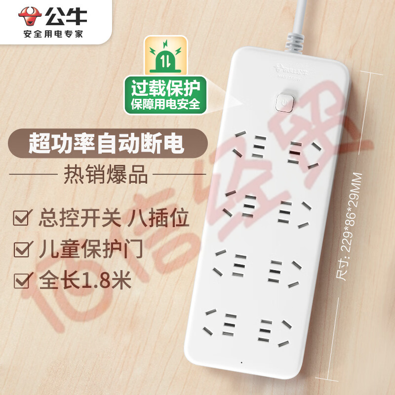 ¥115.40公牛(BULL)20W PD蘋果快充插座/插線板/插排/接線板 Type-c口+USB口+6插孔 全長1.8米白色 GNV-U1206