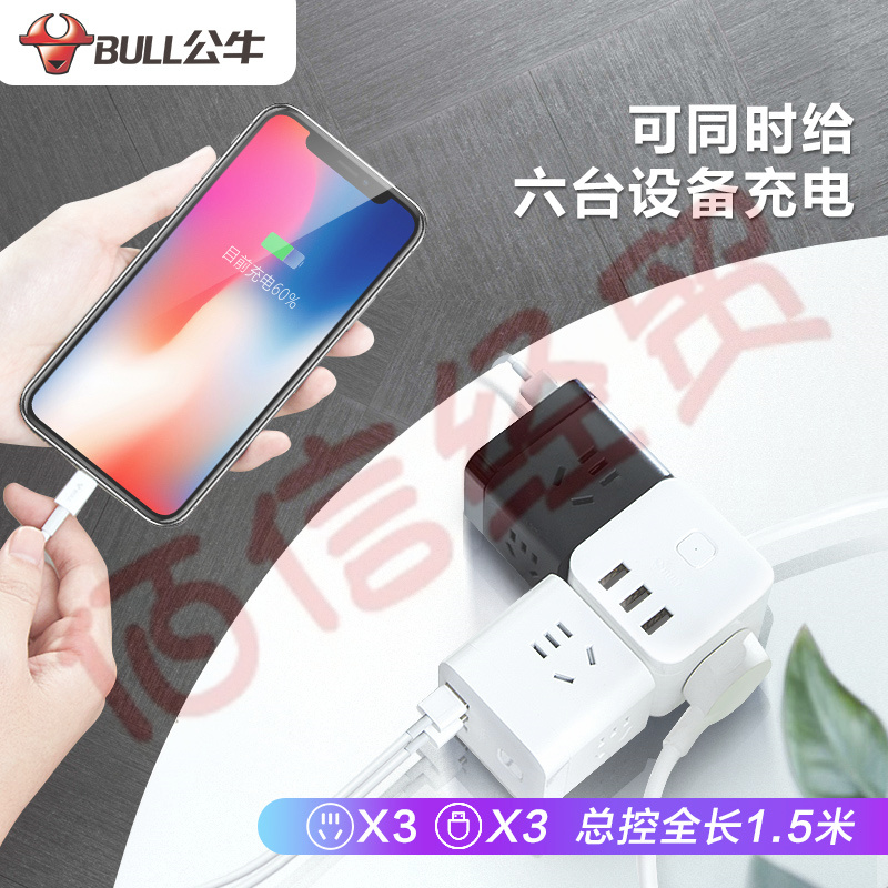 公牛(BULL)公牛桌洞USB插座/插線板/插排/排插/接線板/拖線板 5插孔+2USB口 GN-U2050