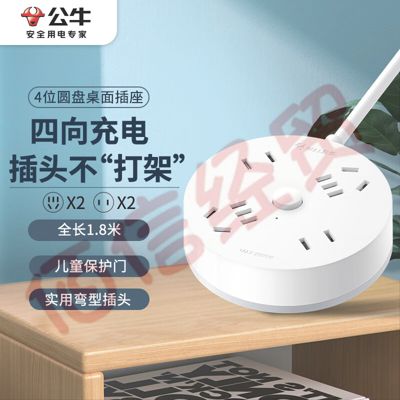 公牛(BULL)公牛桌洞USB插座/插線板/插排/排插/接線板/拖線板 5插孔+2USB口 GN-U2050