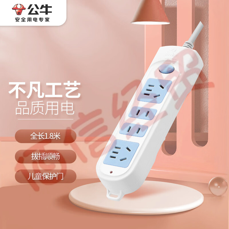 公牛(BULL)新國標(biāo)插座/插線板/插排/排插/接線板/拖線板 GN-607 4位總控全長1.8米 自營