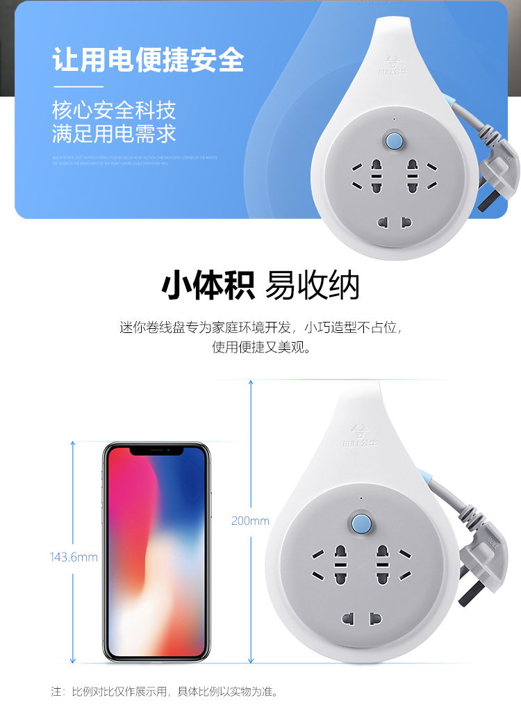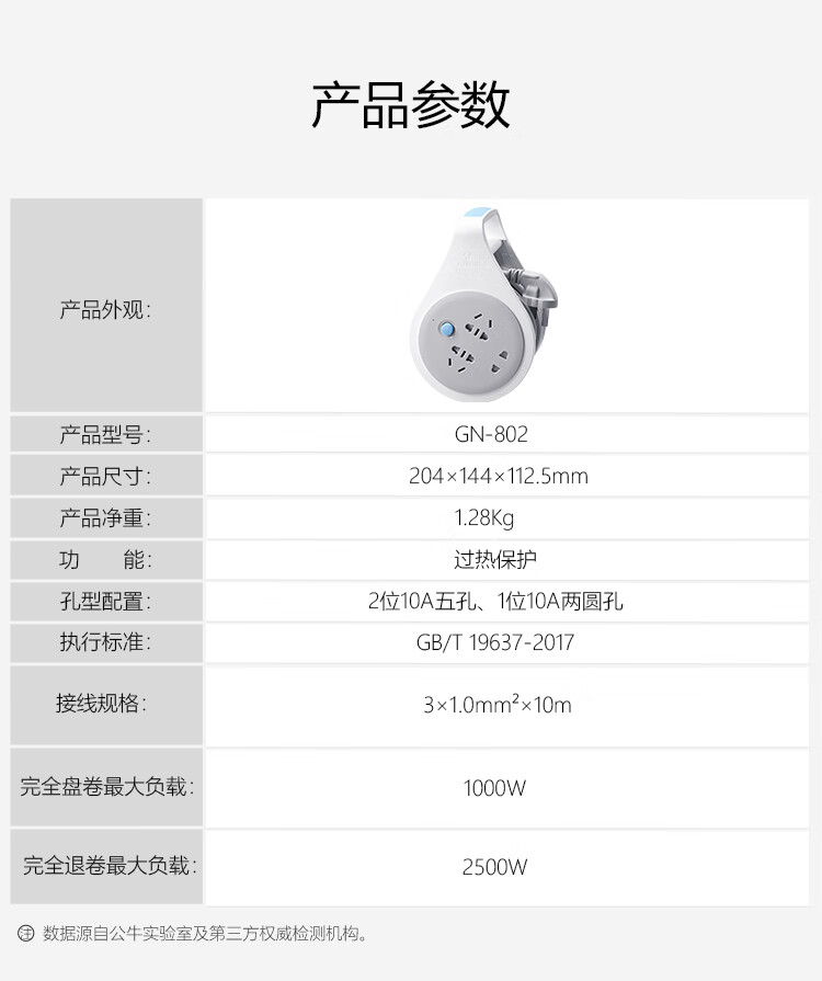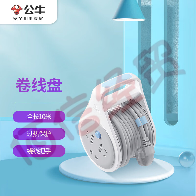 公牛(BULL)新升級(jí)工程接線盤/工程卷線盤/過熱保護(hù)電纜卷盤插座/插排 工程專用 3位10米 GN-802 自營