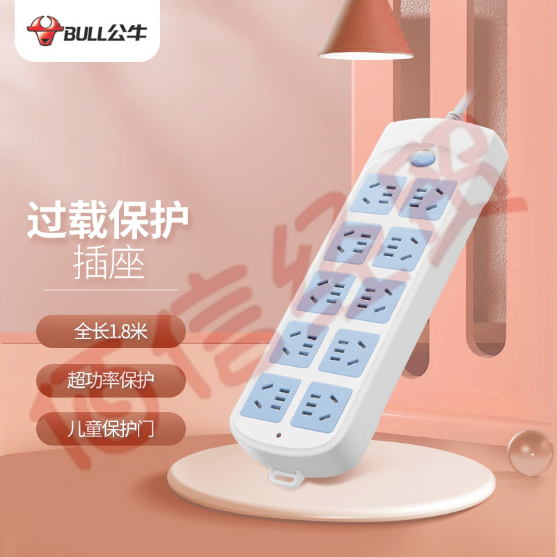 公牛(BULL)超功率保護(hù)新國標(biāo)插座/插線板/插排/排插/接線板/拖線板 10位總控全長1.8米 GN-605 自營