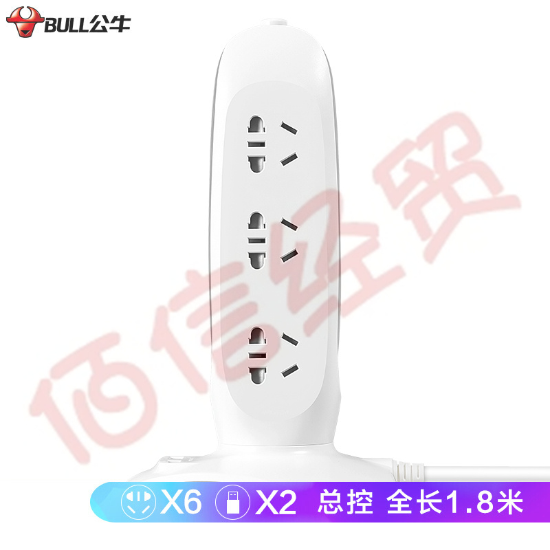 ¥115.40公牛(BULL)20W PD蘋果快充插座/插線板/插排/接線板 Type-c口+USB口+6插孔 全長1.8米白色 GNV-U1206