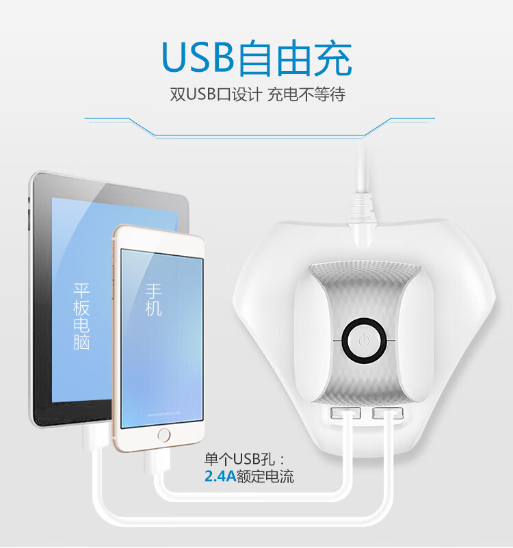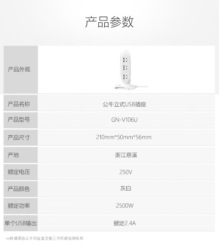 公牛(BULL)公牛桌洞USB插座/插線板/插排/排插/接線板/拖線板 5插孔+2USB口 GN-U2050