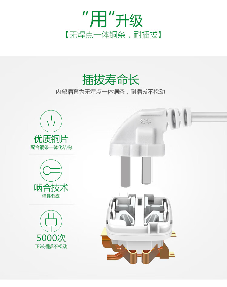 公牛(BULL)公牛桌洞USB插座/插線板/插排/排插/接線板/拖線板 5插孔+2USB口 GN-U2050