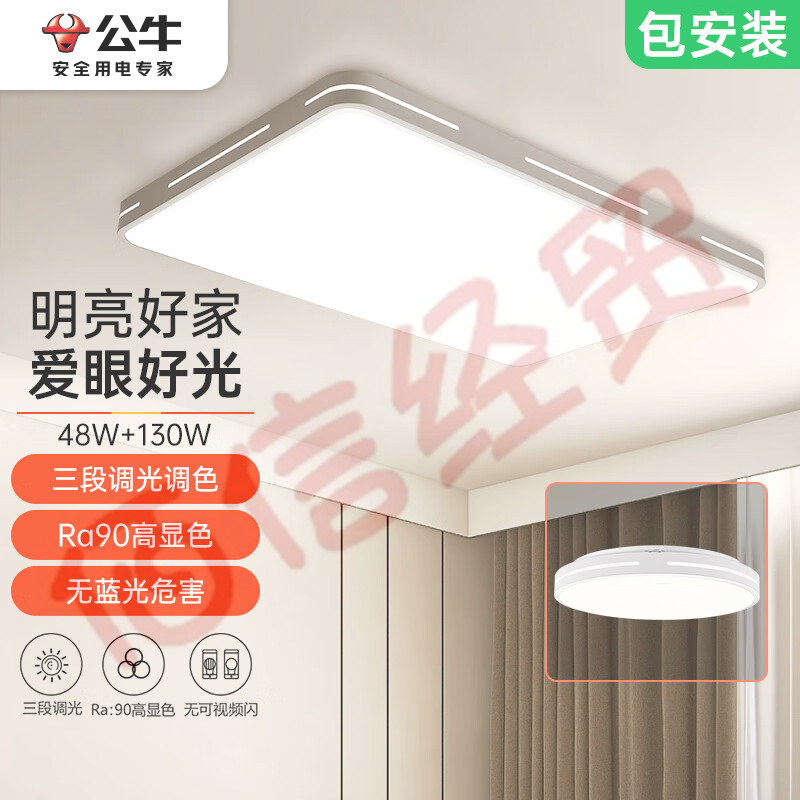 公牛(BULL)吸頂燈 明皓MX-C130E-BS客廳燈全屋燈北歐現(xiàn)代簡(jiǎn)約三段調(diào)光款130W+48W套裝 自營(yíng)
