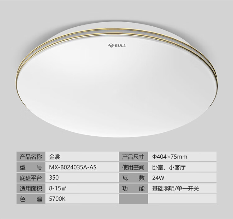 公牛(BULL)吸頂燈 LED圓形臥室燈玄關(guān)過道燈走廊陽臺(tái)燈現(xiàn)代簡約白色8W色溫5700K 自營