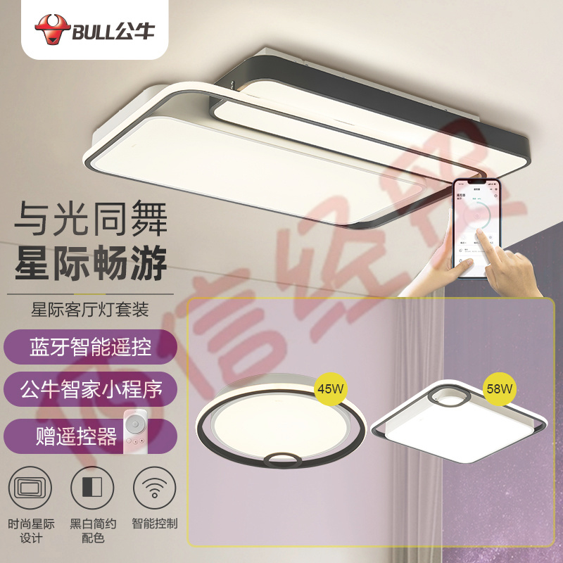 公牛(BULL)LED吸頂燈X36星際MX-M130B-CD無(wú)線(xiàn)遙控/小程序智能控制/無(wú)極調(diào)光燈具 :客廳燈+方形燈+臥室燈 自營(yíng)