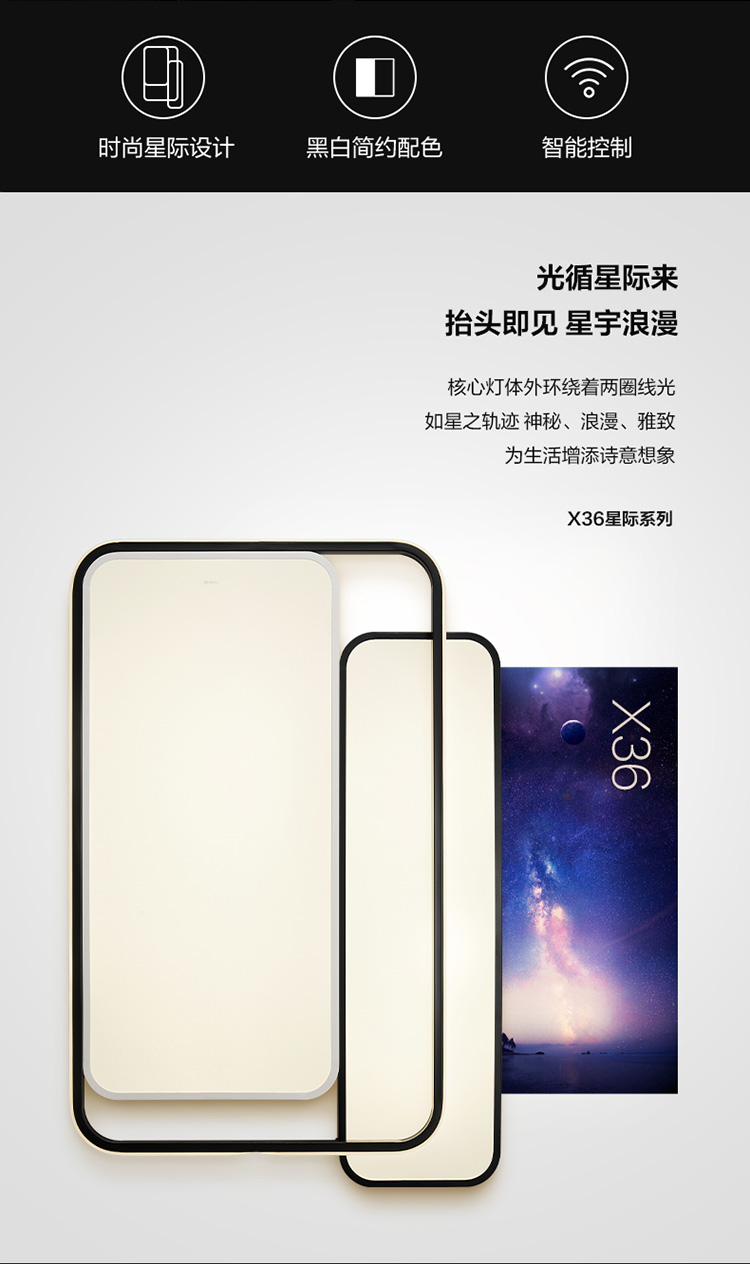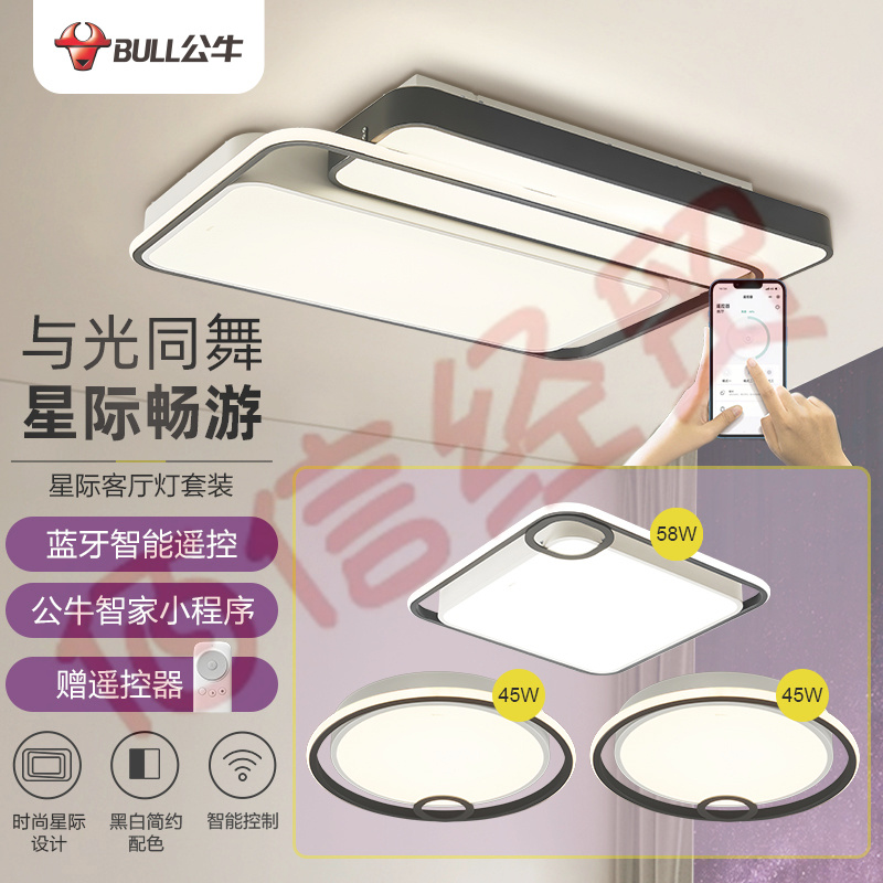 公牛(BULL)LED吸頂燈X36星際MX-M130B-CD無線遙控/小程序智能控制/無極調光燈具 :客廳燈+方形燈+臥室燈*2 自營