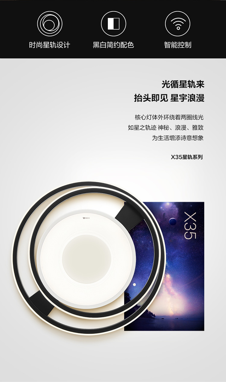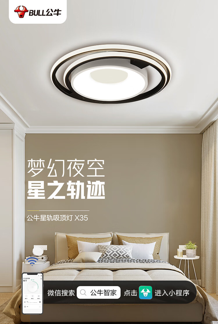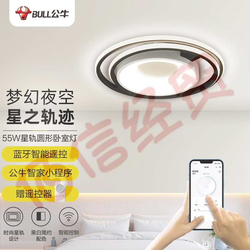 公牛(BULL)智能吸頂燈 X35星軌系列 遙控器小程序控制MX-M060A-CD臥室燈餐廳燈 無極調(diào)光/三檔調(diào)色 圓形55W 自營(yíng)