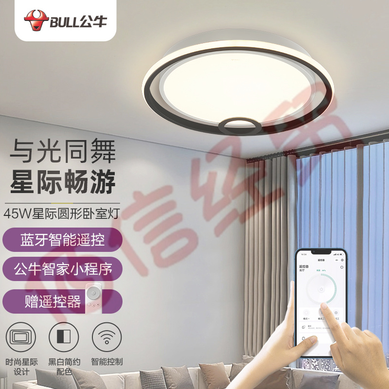公牛(BULL)智能吸頂燈 X36星際系列 遙控器小程序控制MX-M048B-CD臥室燈餐廳燈 無(wú)極調(diào)光/三檔調(diào)色 45W 自營(yíng)
