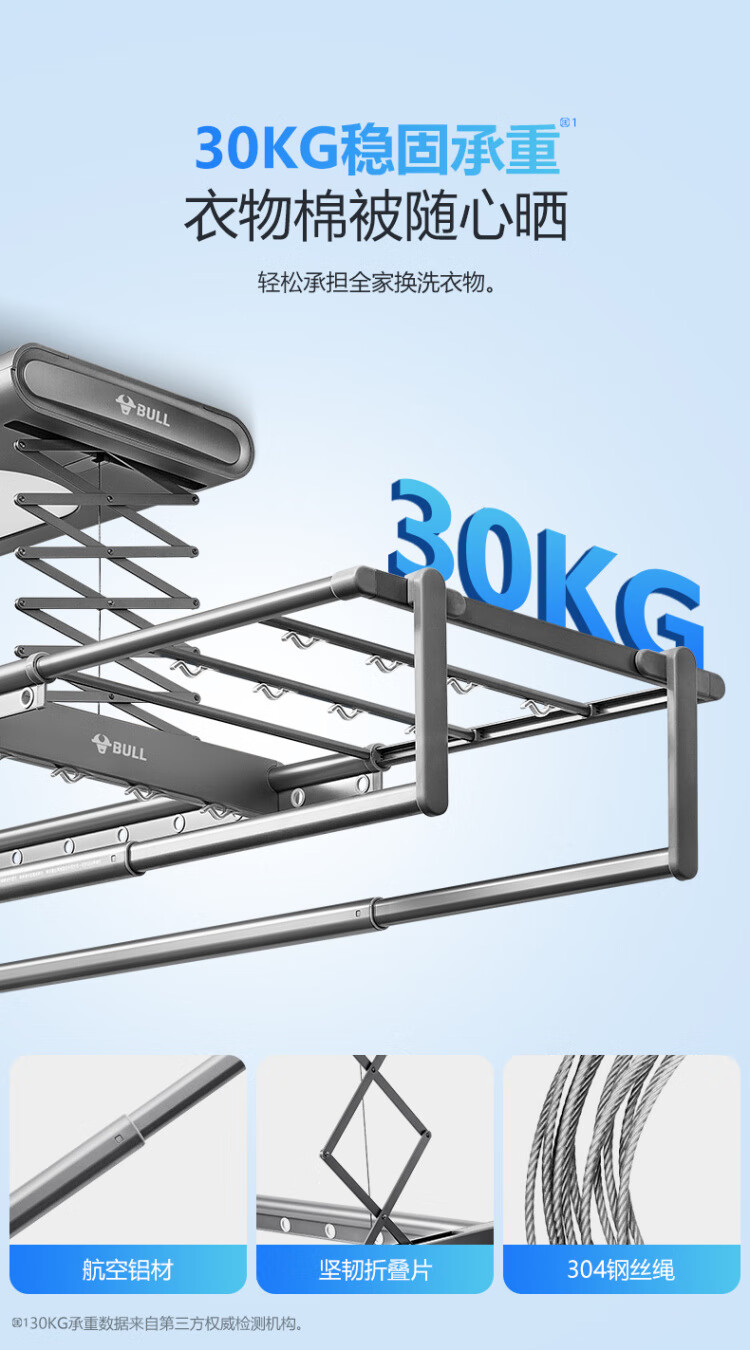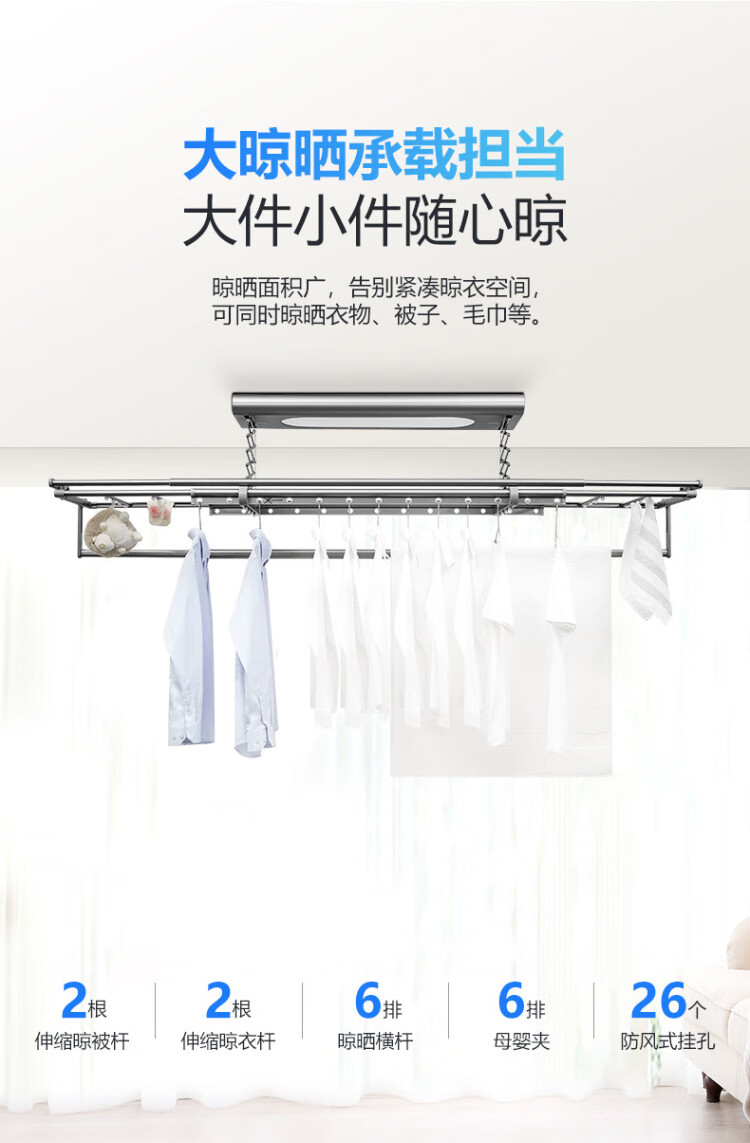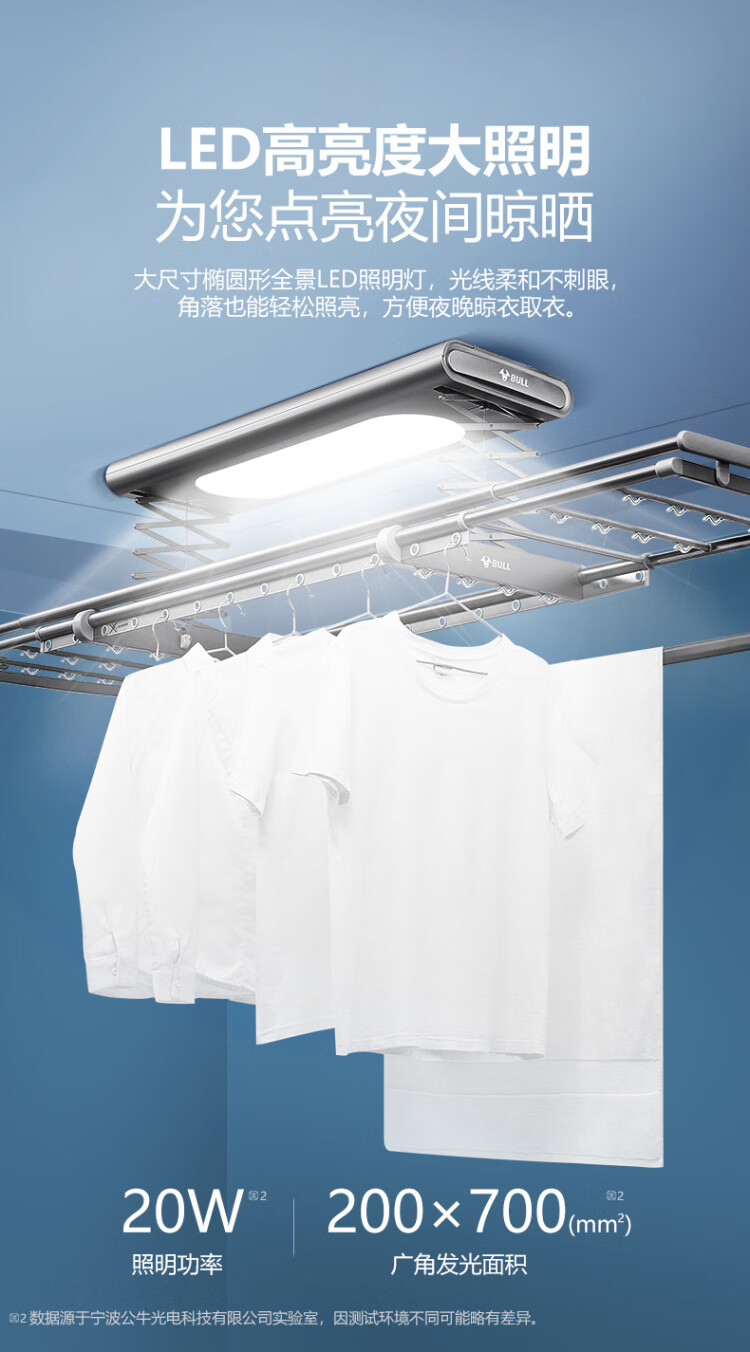 ¥959.30公牛晾衣架公牛智能電動晾衣架遙控升降衣被同曬智能語音控制智能 基礎款照明+遙控+24孔+4晾桿GJ221AT