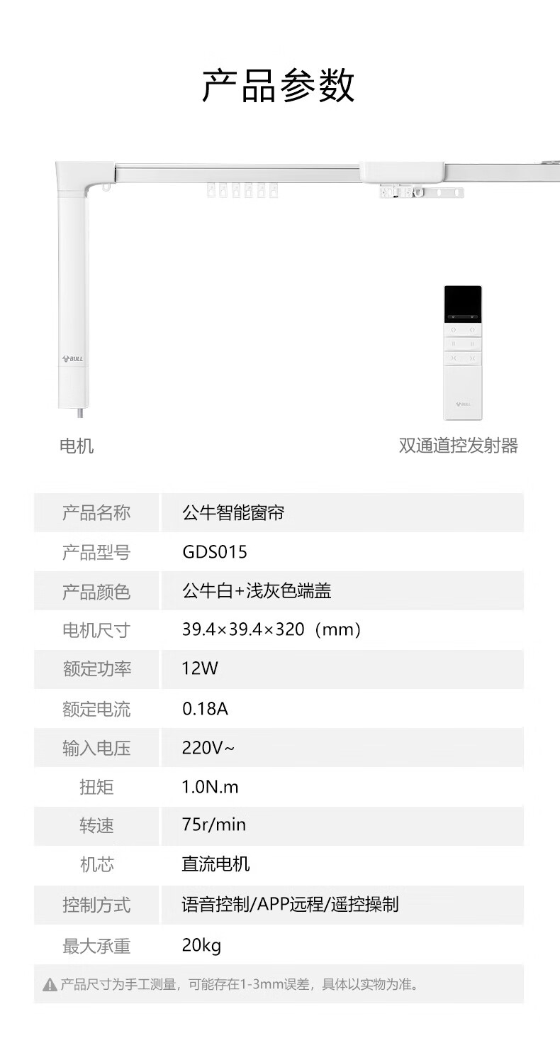 ¥1201.80公牛(BULL)智能窗簾 伸縮軌窗簾 小愛(ài)同學(xué)小度等音箱控制(電機(jī)+2.2-4米伸縮軌+遙控器+免費(fèi)安裝)GDC035B