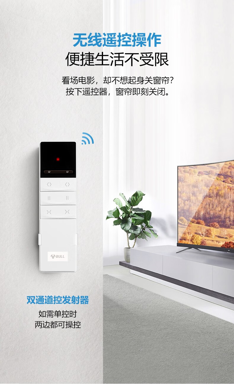 公牛(BULL)智能電動(dòng)窗簾軌道伸縮窗簾伸縮至3米4米遙控APP音箱操控軌道窗簾 伸縮軌窗簾4m(S015B)