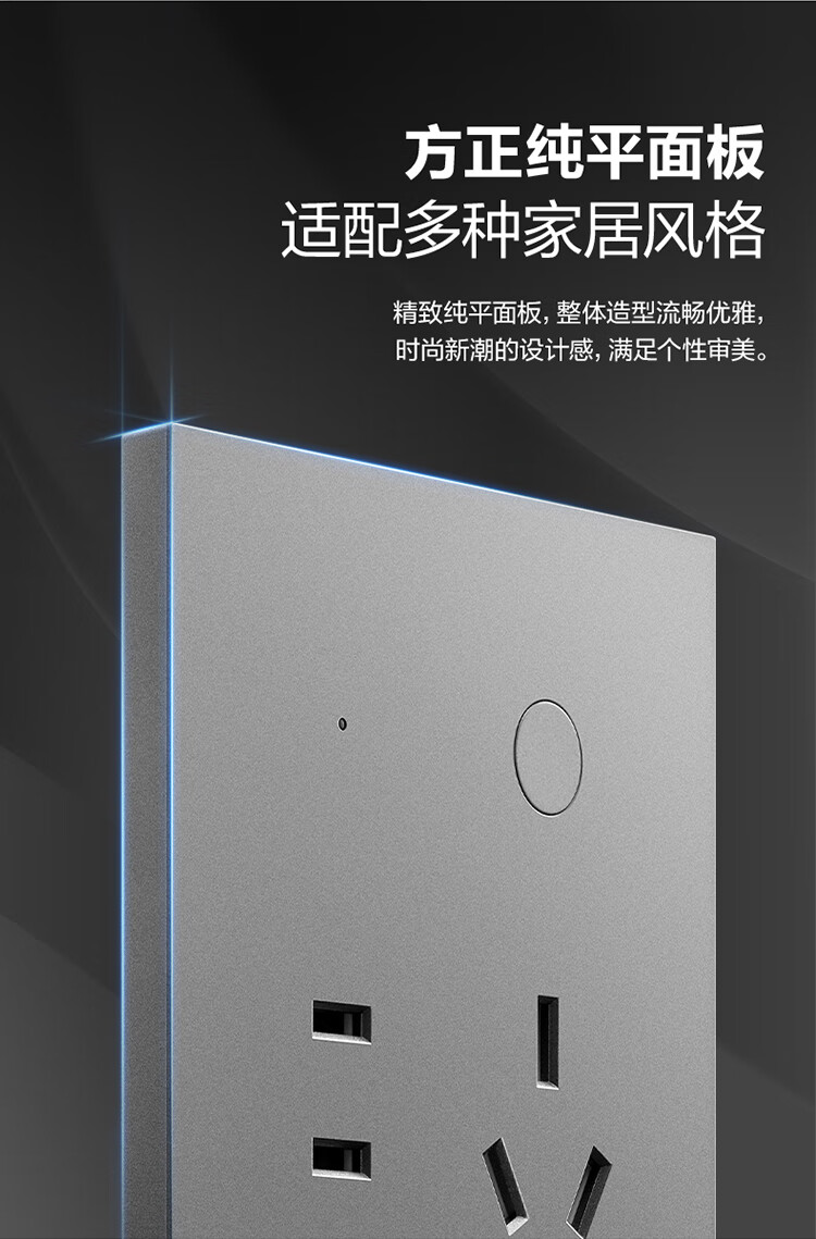 ¥251.20萬家 公牛開關(guān)插座 G12星空灰系列 大面板插座 墻壁電源插座開關(guān)面板 一開雙控五孔 G12E334