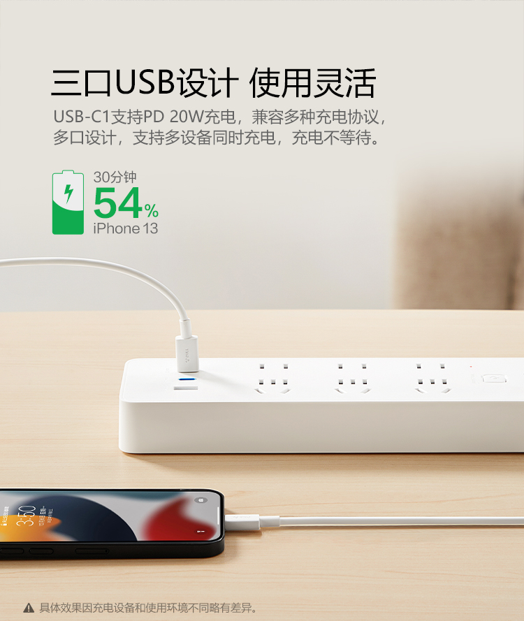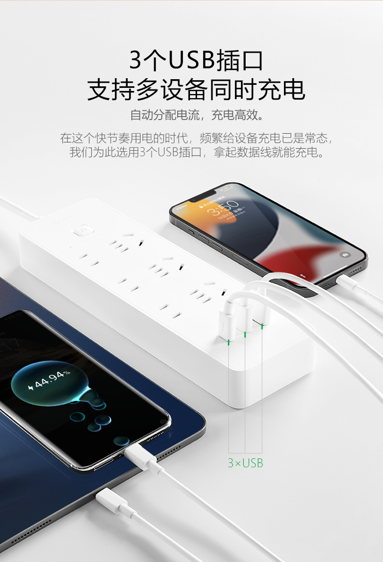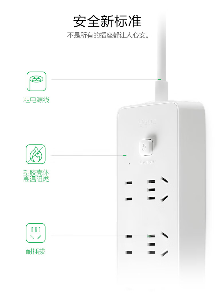 公牛(BULL)20W PD蘋果快充插座/插線板/插排/接線板 Type-c口+USB口+6插孔 全長1.8米 GNV-U12033 自營