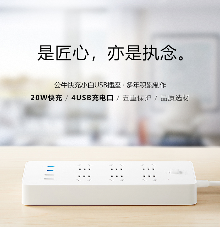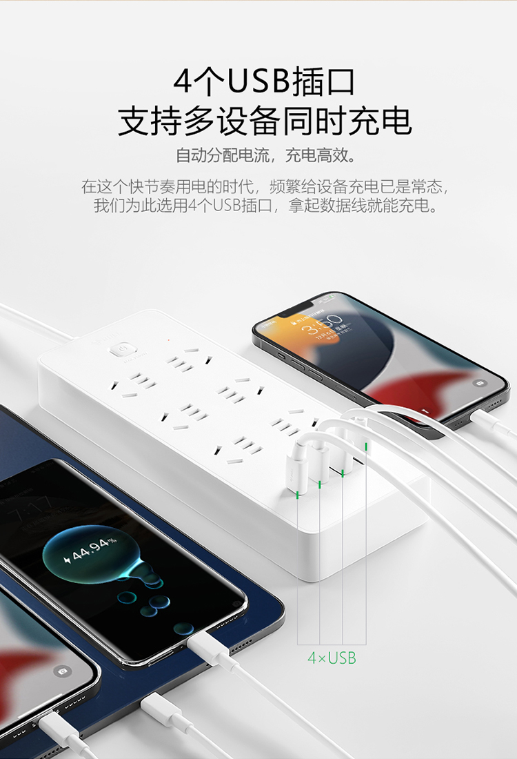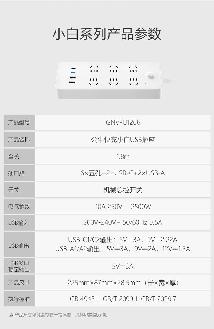 ¥115.40公牛(BULL)20W PD蘋果快充插座/插線板/插排/接線板 Type-c口+USB口+6插孔 全長1.8米白色 GNV-U1206