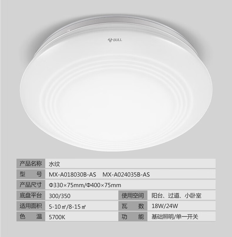 公牛(BULL) 吸頂燈ED臥室燈玄關(guān)衛(wèi)生間門廊陽(yáng)臺(tái)樓道現(xiàn)代簡(jiǎn)約燈具 12W全白MX-A012023A-AS 自營(yíng)