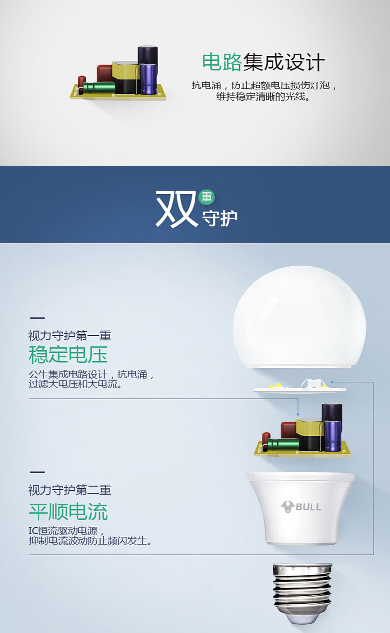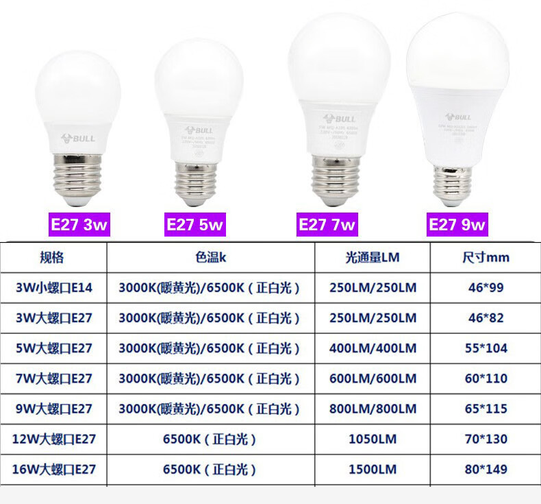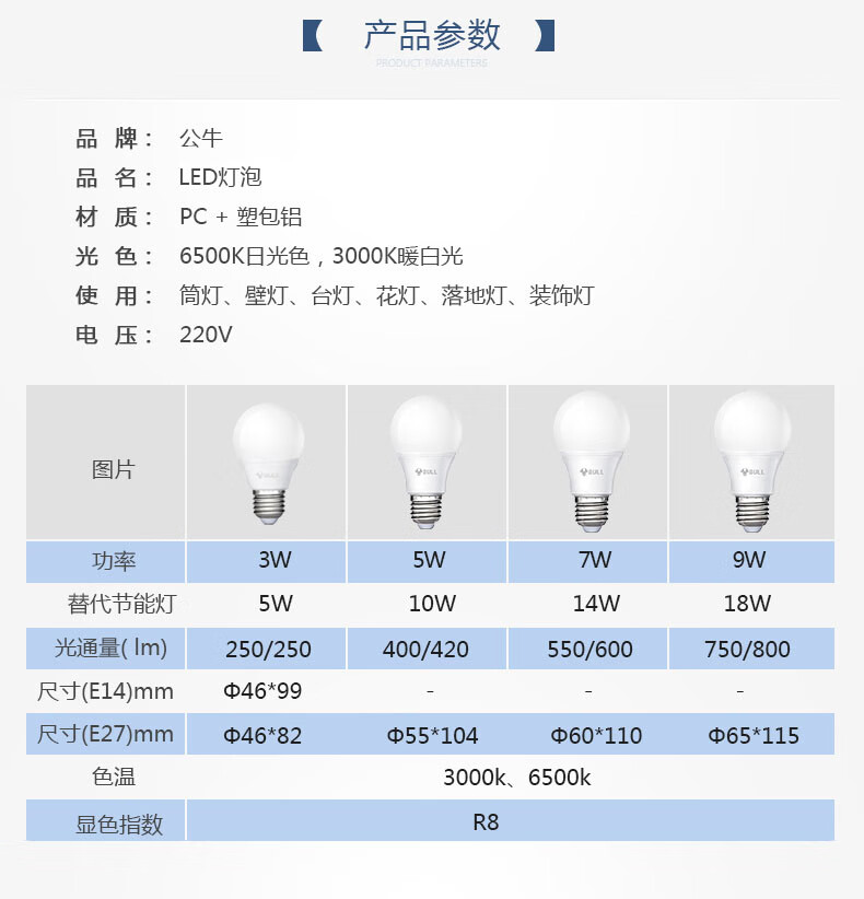 公牛愛眼 MQ-A10911 LED球泡 燈泡 6500K 9W E27白光 白色球泡燈(定制) 自營