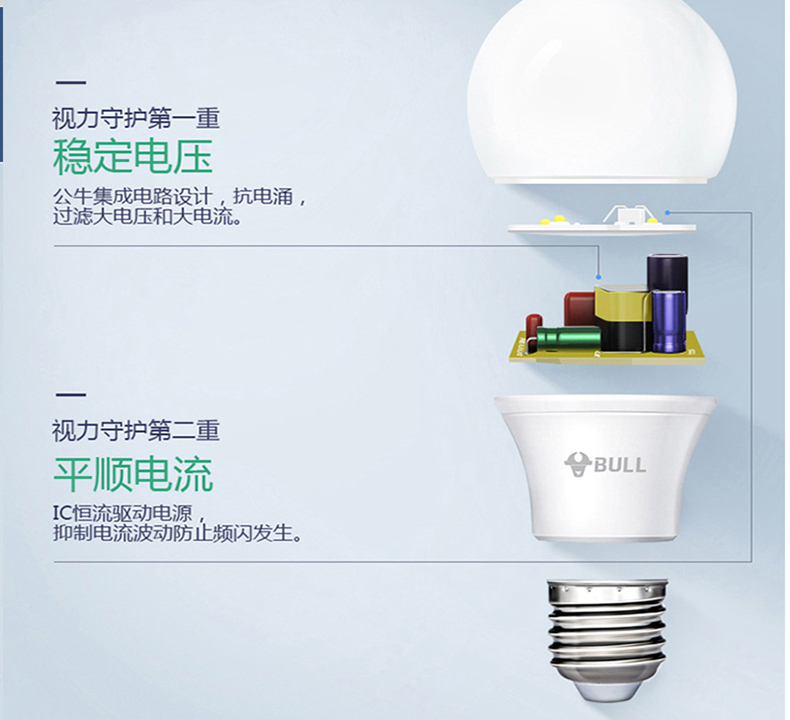 公牛(BULL)MQ-E9R5A-BS LED直筒泡 小柱泡 燈泡 9.5WE27白光 自營