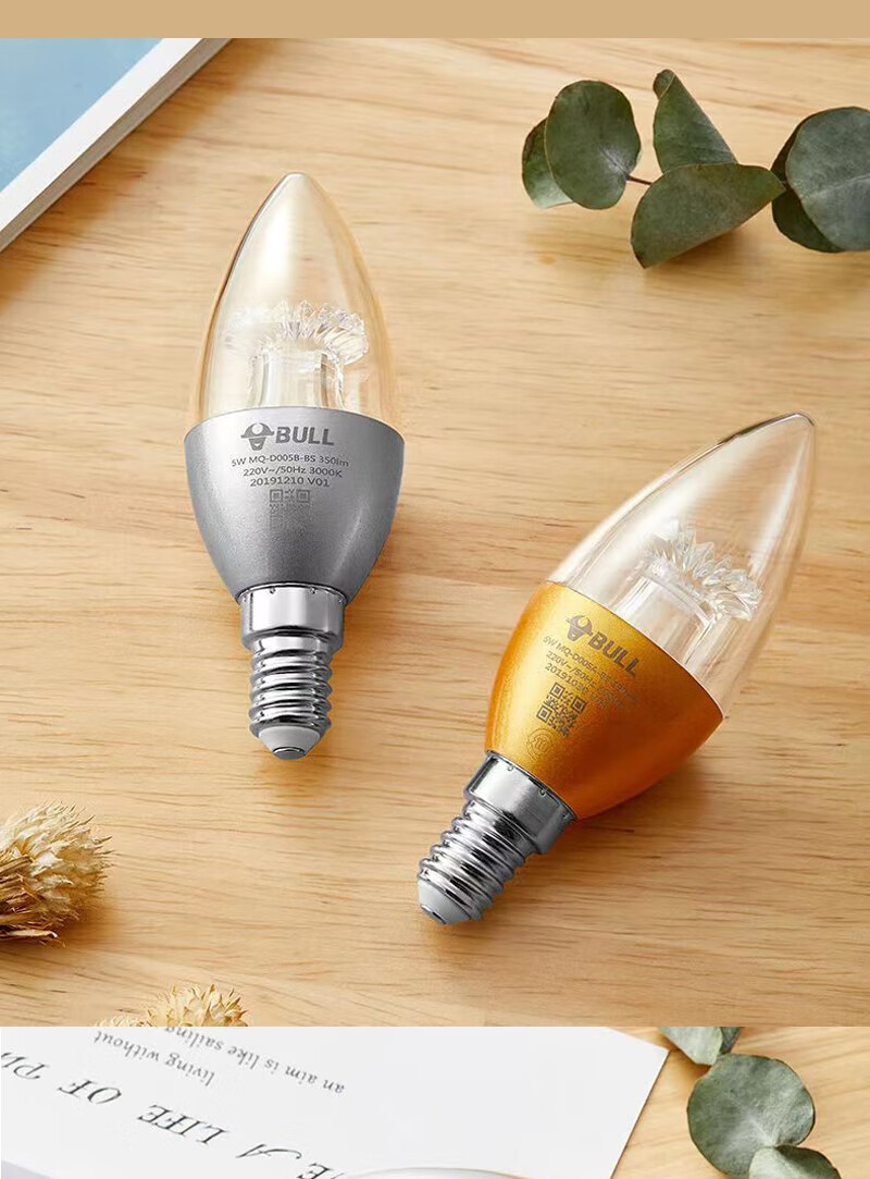 公牛LED 蠟燭燈泡 3W-3000K 暖白光 E14螺口 MQ-D003B-BS 銀色 個(gè) 自營(yíng)