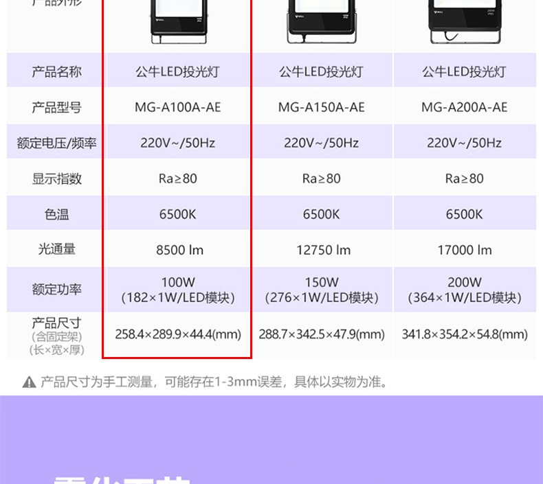公牛(BULL)MG-A100A-AE LED投光燈 投光燈100W 自營
