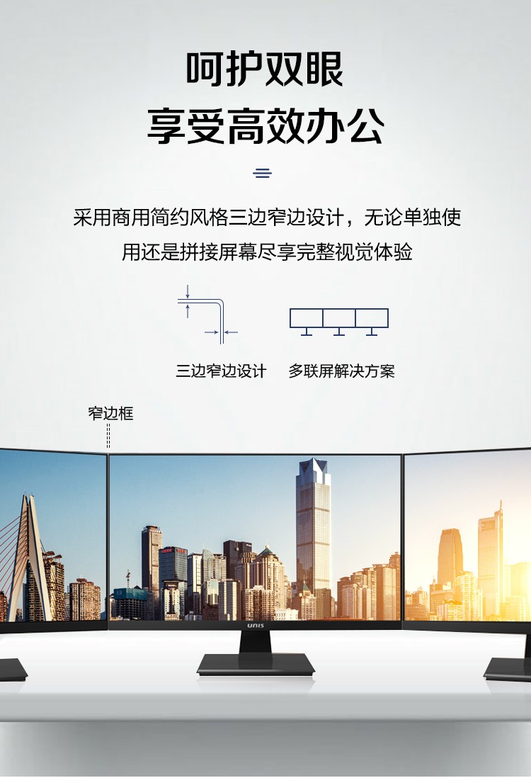 ¥1027.20UNIS 紫光電腦顯示器窄邊框IPS家用護(hù)眼防藍(lán)光高亮度HDMI接口高清商用液晶顯示器 B241F 23.8英寸IPS護(hù)眼窄邊框液晶顯示器