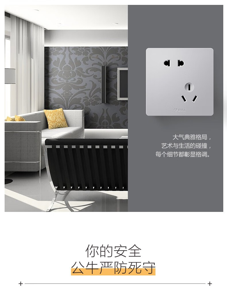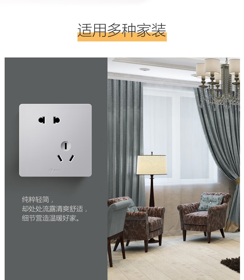 ¥74.40萬(wàn)家 公牛開(kāi)關(guān)插座 G12星空灰系列 大面板插座 墻壁電源插座開(kāi)關(guān)面板 斜五孔 G12Z223A
