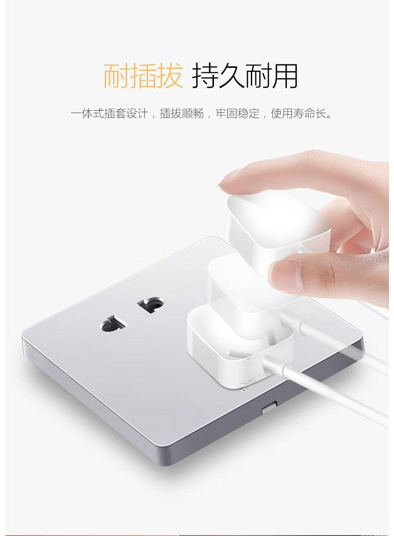 ¥41.70開(kāi)關(guān)插座墻壁開(kāi)關(guān)面板30W快充USB充電插座86型五孔插座G12 G12E537灰色