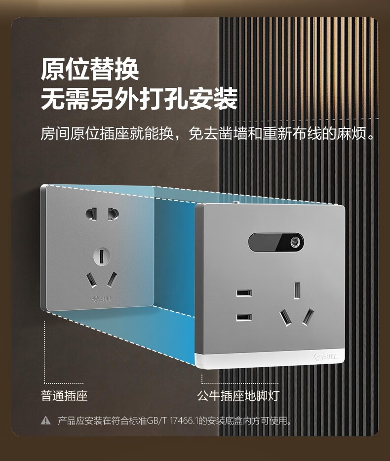 ¥42.60公牛(BULL)開關(guān)電源插座面板上墻插板墻壁多孔帶usb電插座插扦排插 點(diǎn)腦點(diǎn)視 G07T223
