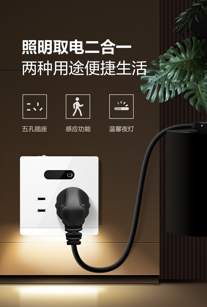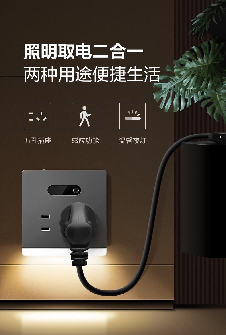 ¥41.70開關(guān)插座墻壁開關(guān)面板30W快充USB充電插座86型五孔插座G12 G12E537灰色