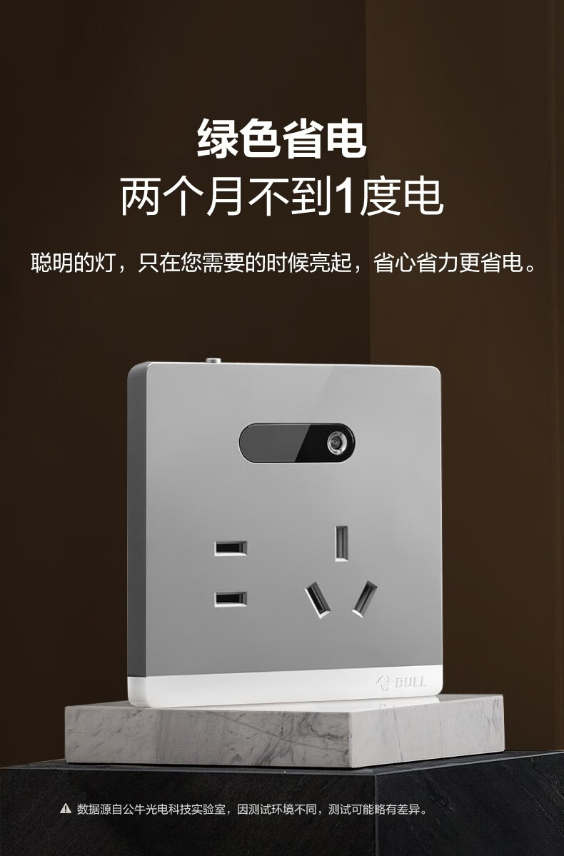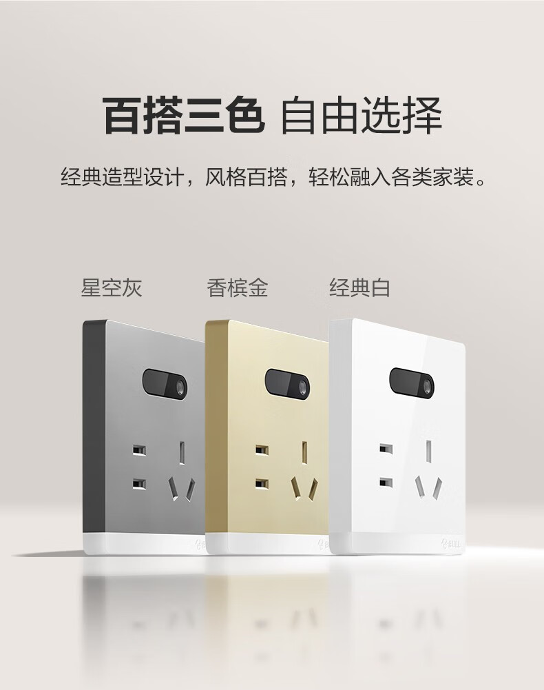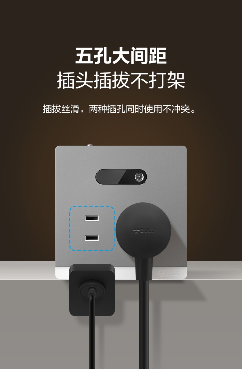 ¥74.40萬家 公牛開關(guān)插座 G12星空灰系列 大面板插座 墻壁電源插座開關(guān)面板 斜五孔 G12Z223A