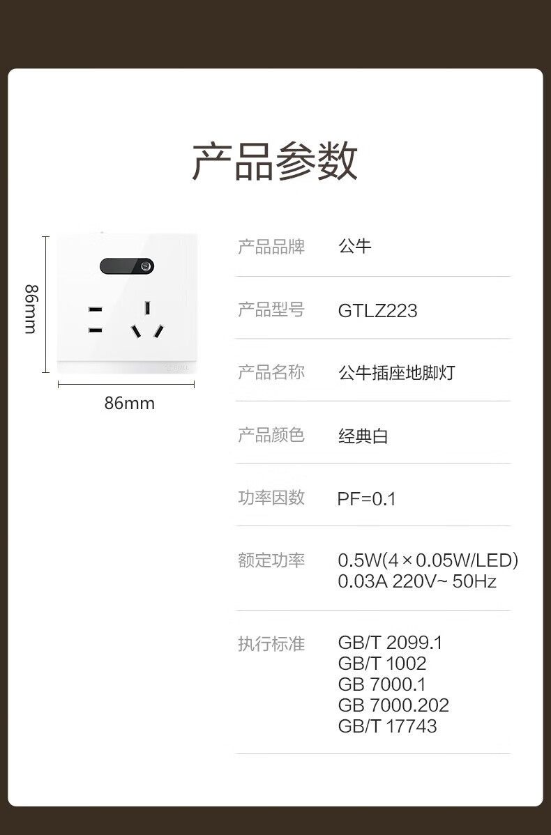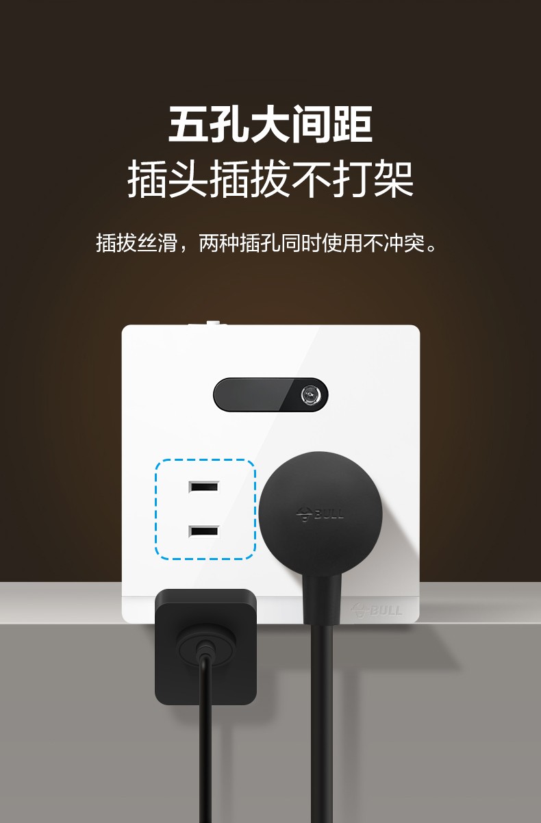 公牛(BULL) 萬家 公牛開關(guān)插座 G12白色系列 大面板插座 10A 家用86型墻壁插座開關(guān) 七孔 G12Z323
