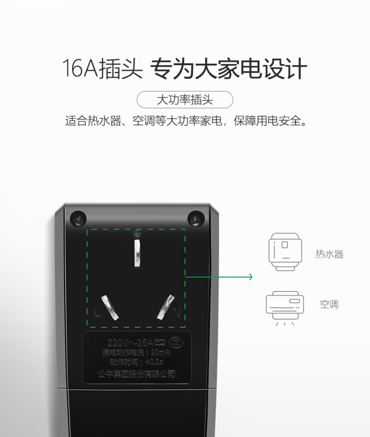 漏電保護插座空調(diào)電熱水龍頭大功率接線插頭防觸電插板 柜機空調(diào)3P-32A(GTP01) 自營