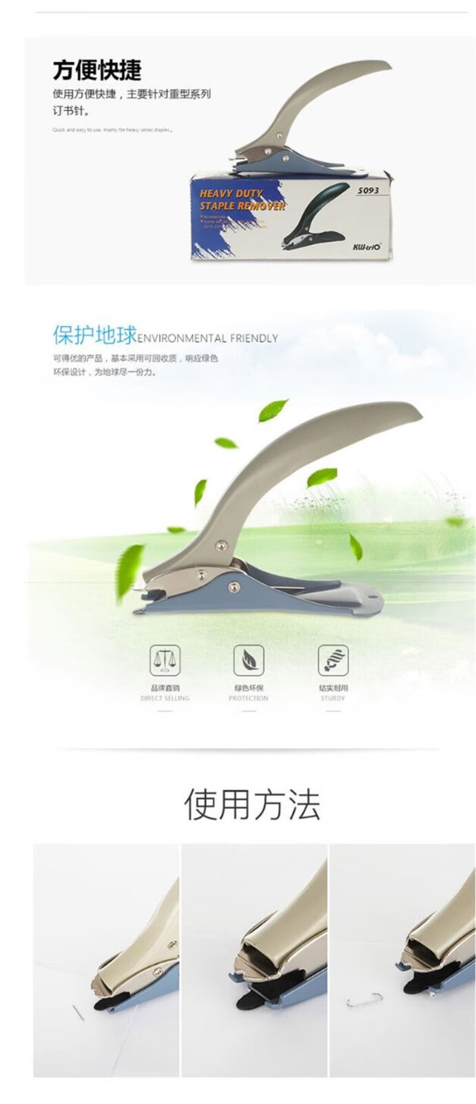 可得優(yōu)(KW-triO) 重型起釘器除訂器辦公文具常規(guī)釘書針雙頭訂書機中縫訂書機不銹鋼訂書針多款可選 5088重型起釘器1個黑色 自營