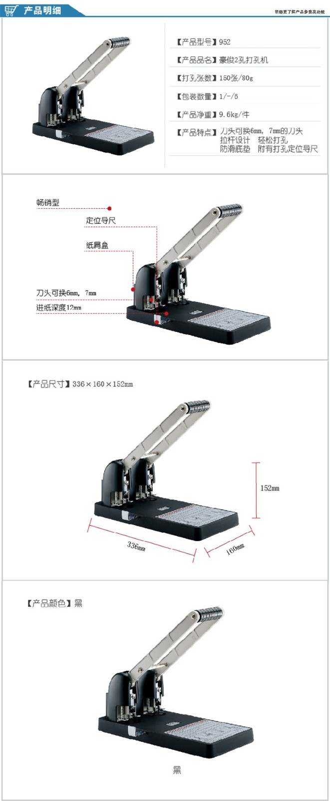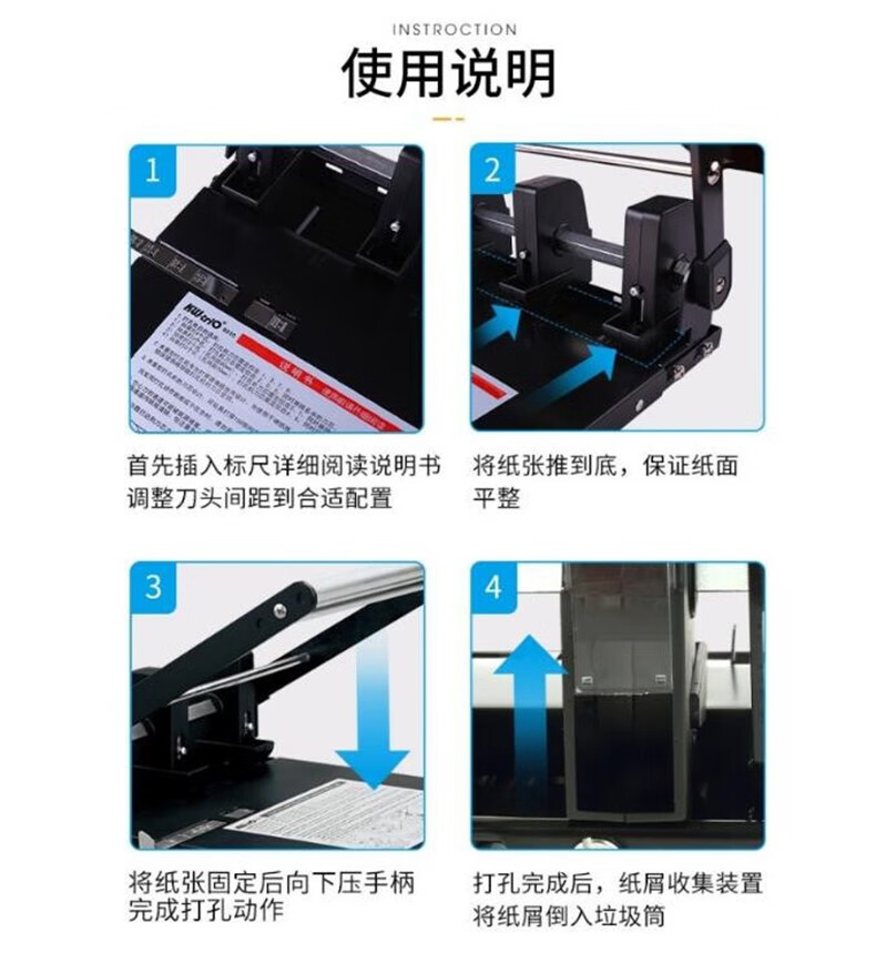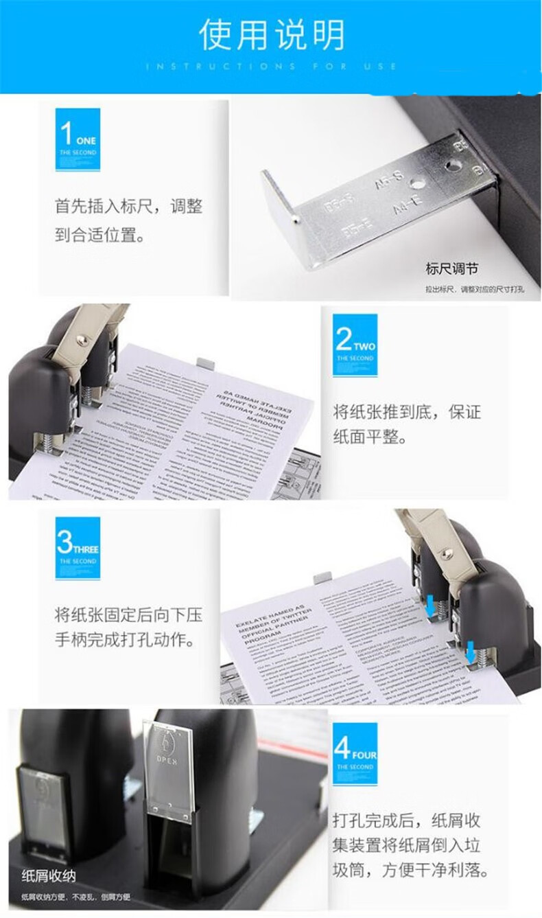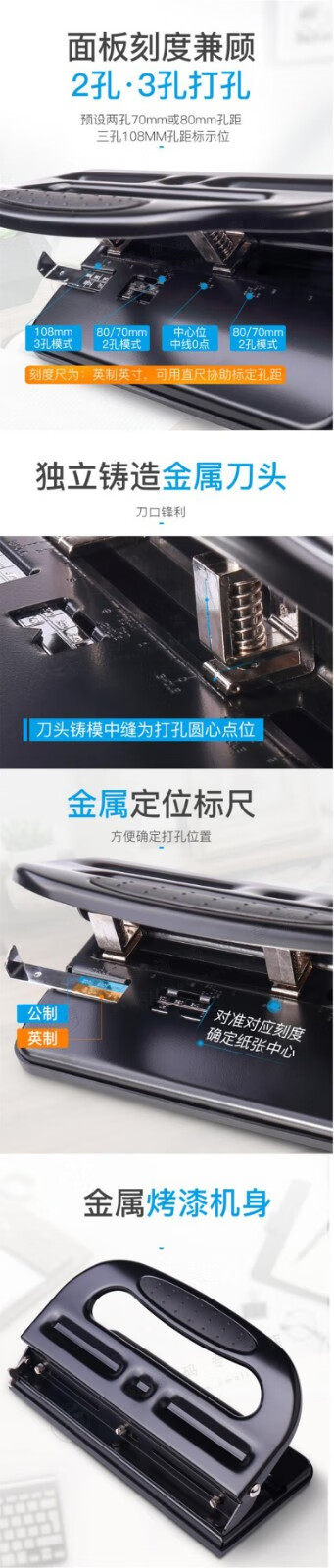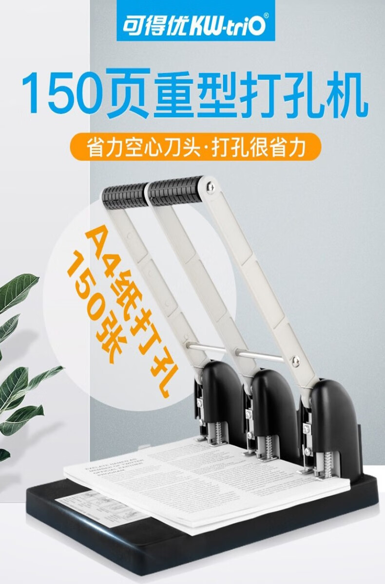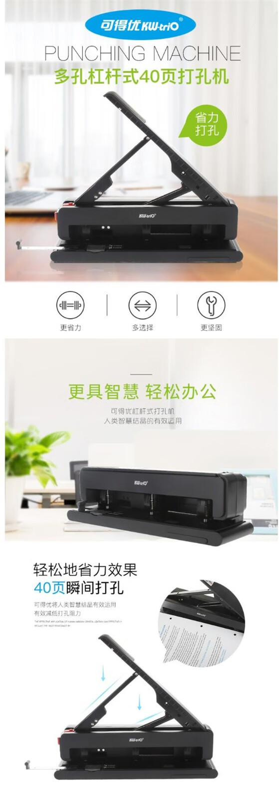 可得優(yōu) 重型打孔機(jī) 省力打孔器 辦公打洞機(jī)手賬活頁紙張打洞機(jī) 手工紙打洞器 9640 可調(diào)式打孔機(jī)(4孔可打30頁)1個(gè)黑色 自營