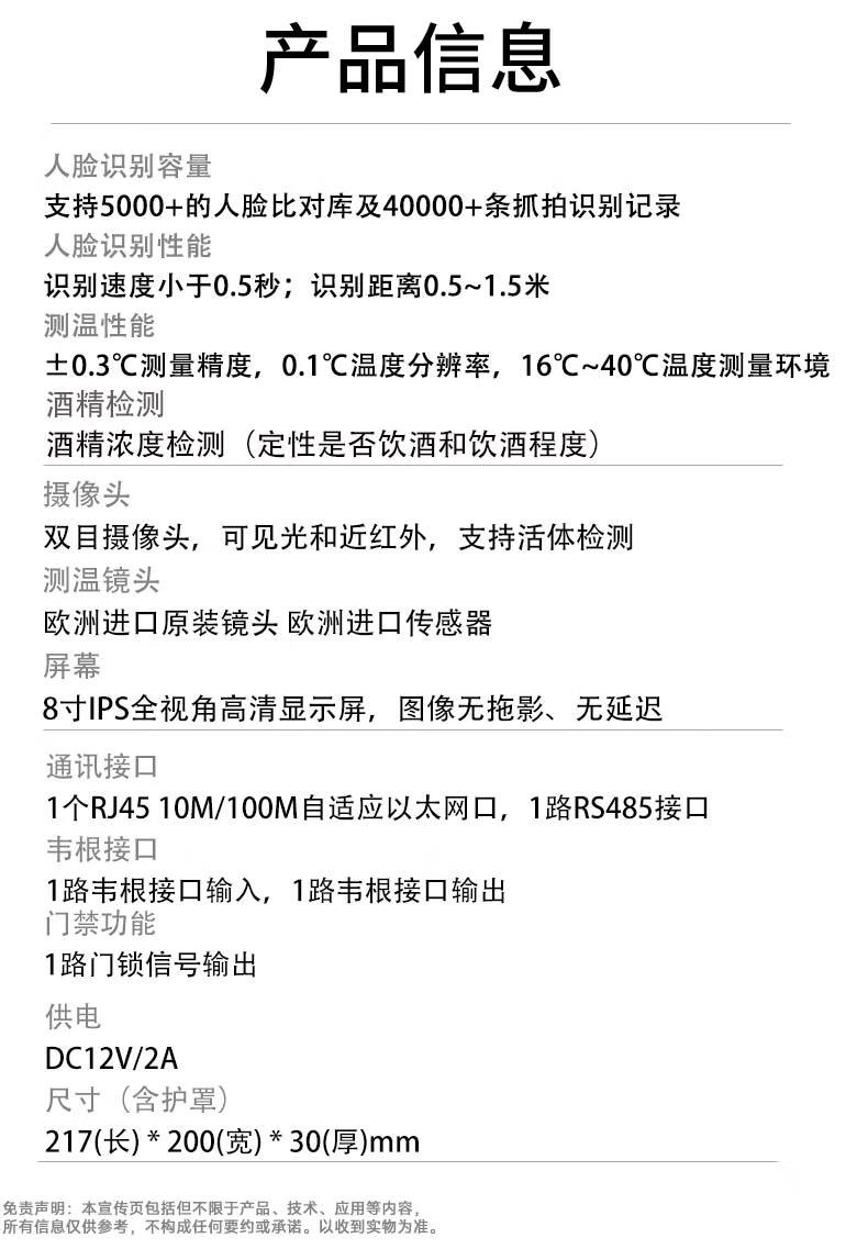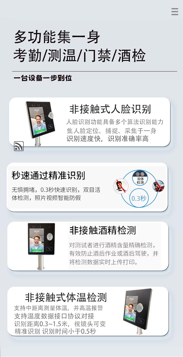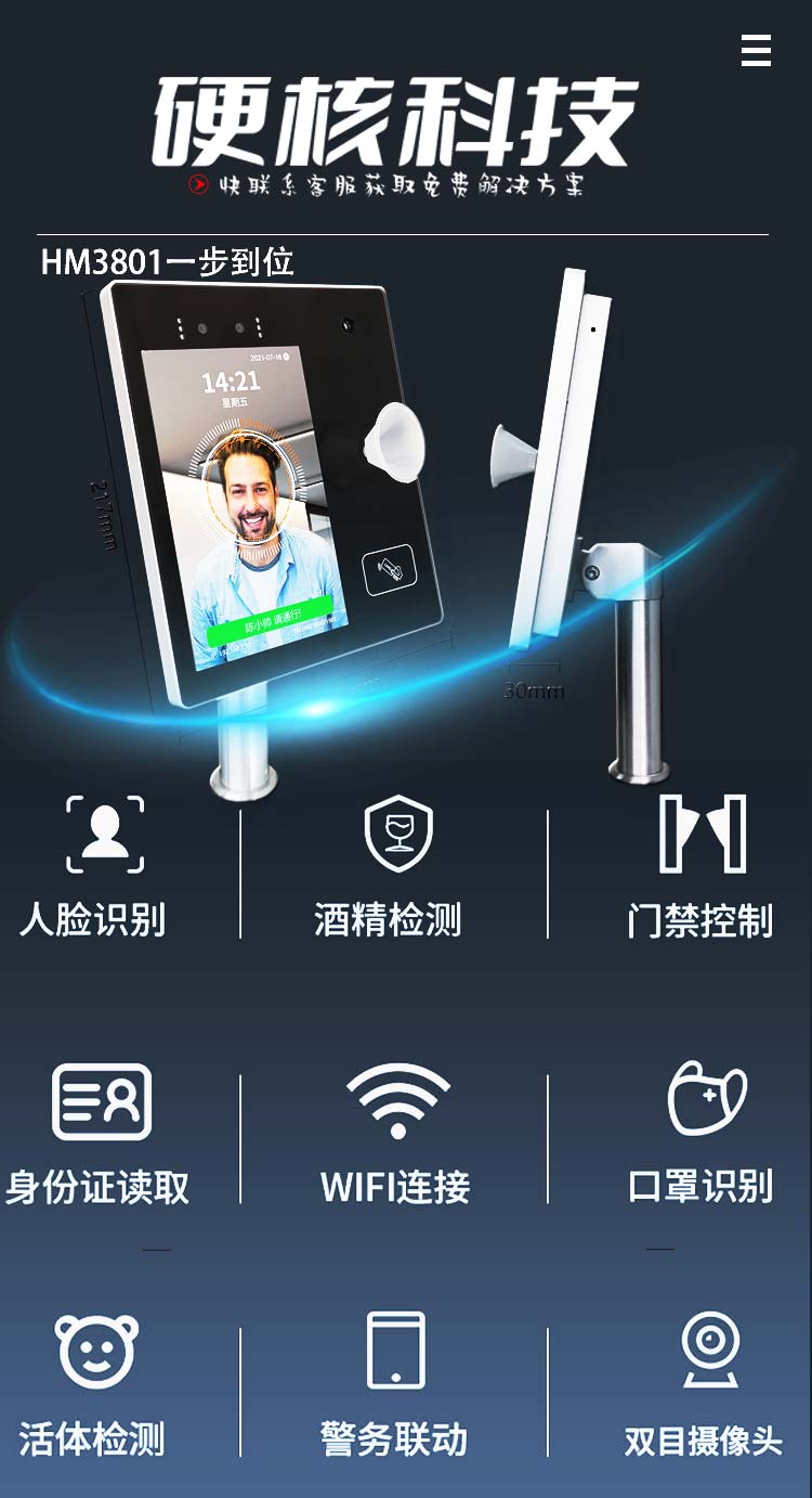 漢瑪智慧(Hanmawin)數字哨兵酒精檢測設備 門禁考勤測溫酒檢 8英寸AI人臉識別測溫酒檢崗前核驗終端HM3801 自營