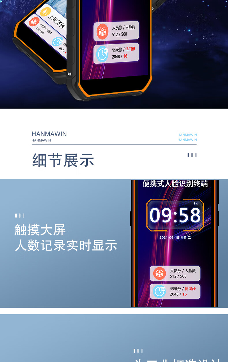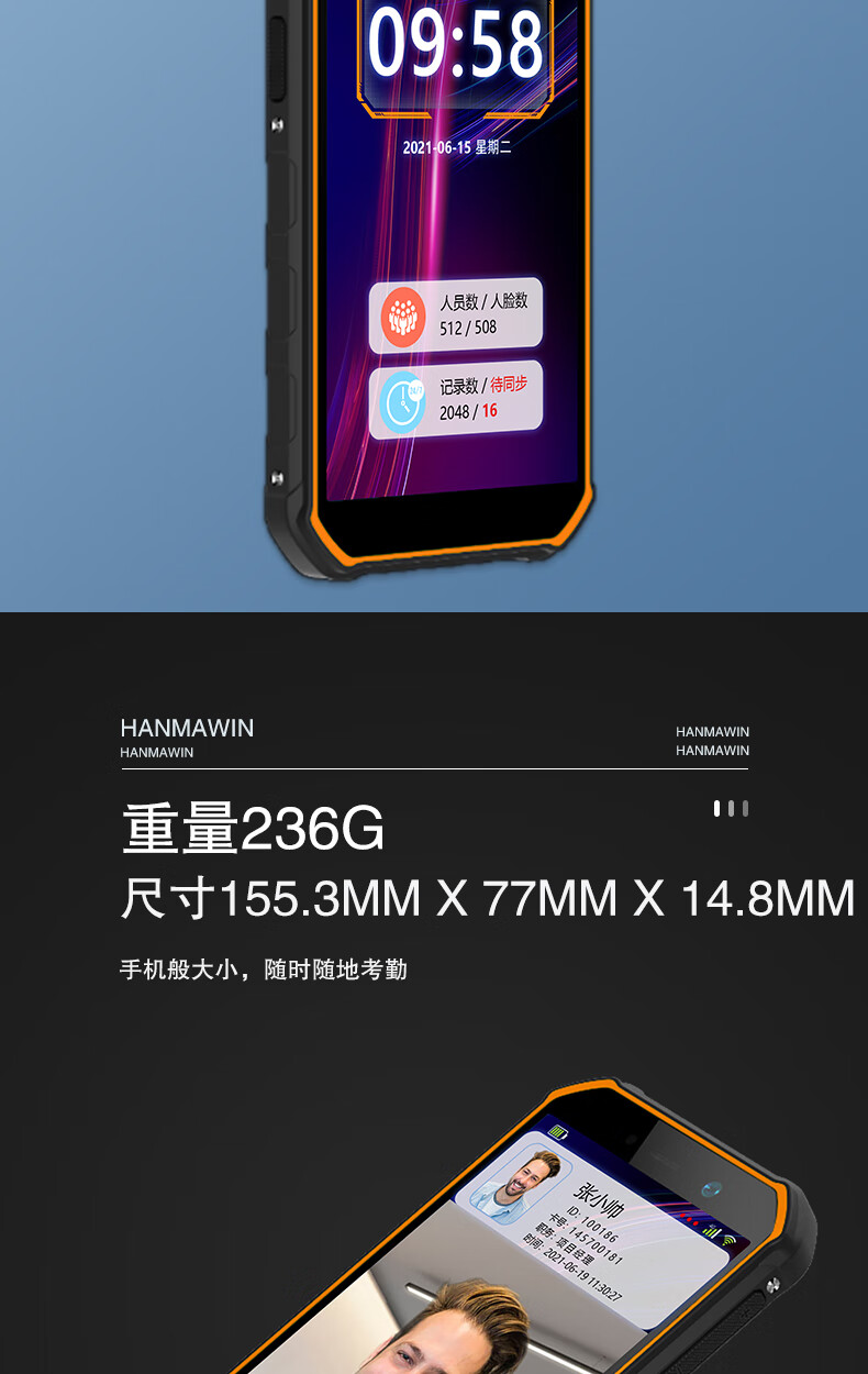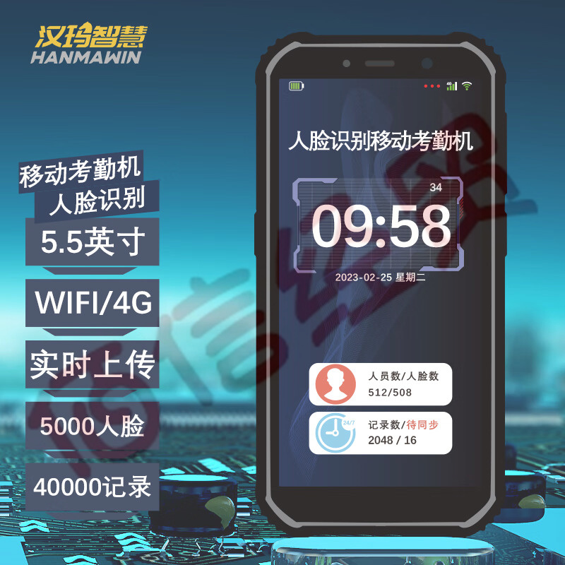 漢瑪智慧(Hanmawin)人臉識(shí)別移動(dòng)考勤機(jī)便攜手持打卡智能后臺(tái)管理系統(tǒng)智慧工地4G實(shí)時(shí)上傳戶外簽到登記 自營(yíng)