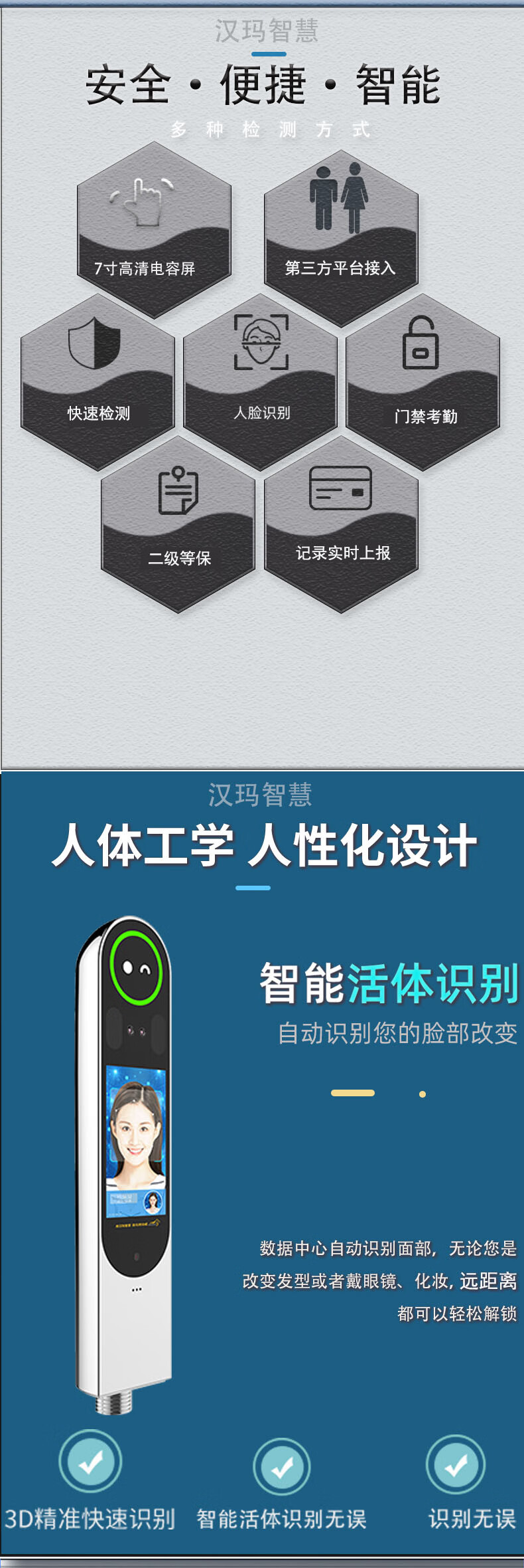 漢瑪智慧(Hanmawin)人臉識別打卡考勤一體機 企業(yè)工地醫(yī)院學校車站系統(tǒng)門禁機 HM3500P 自營