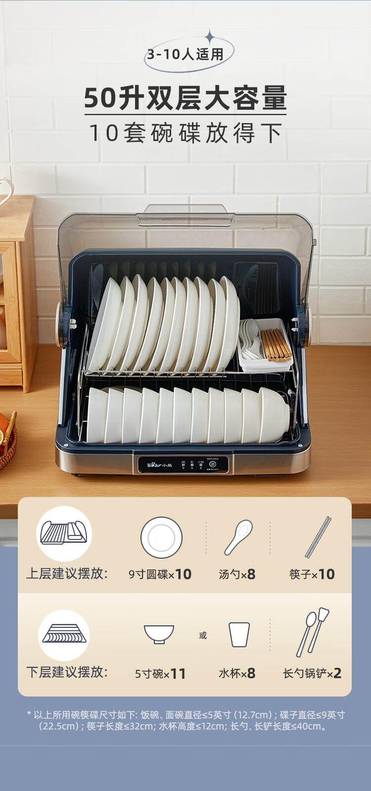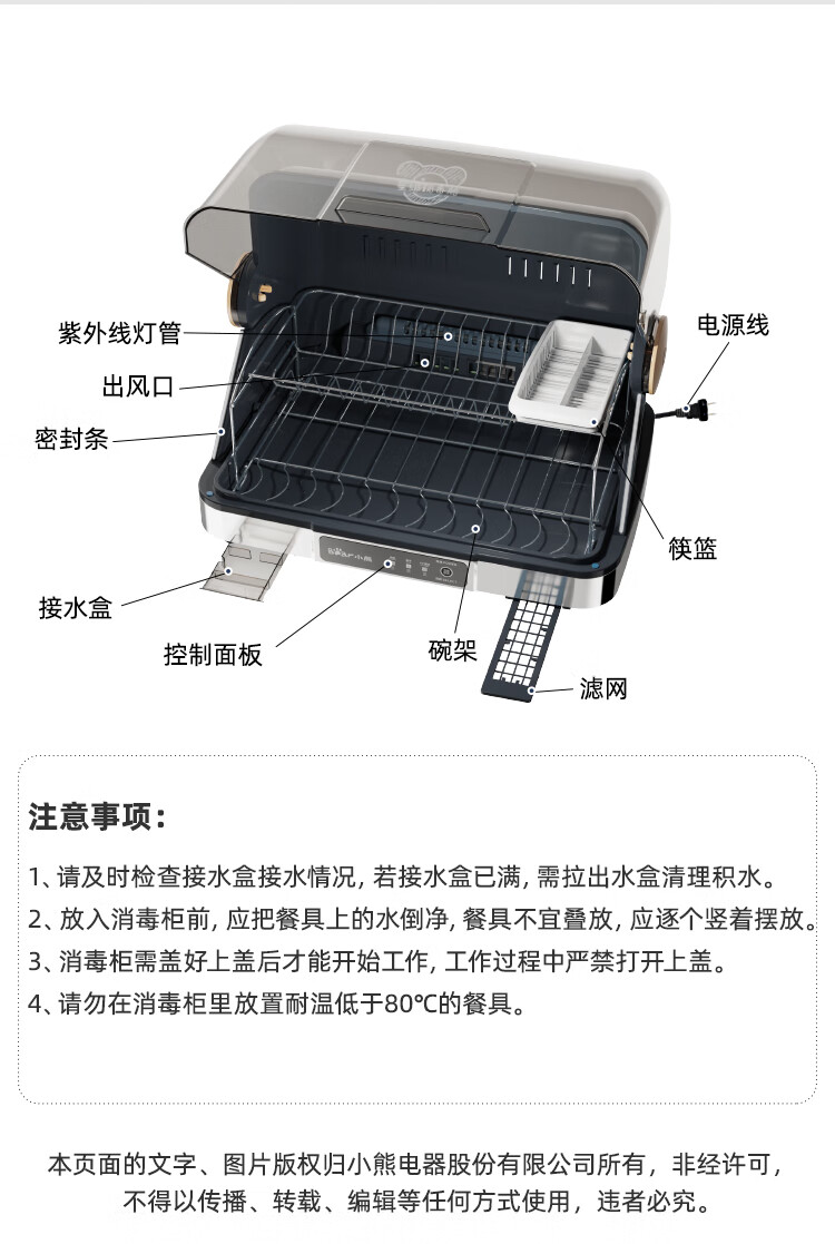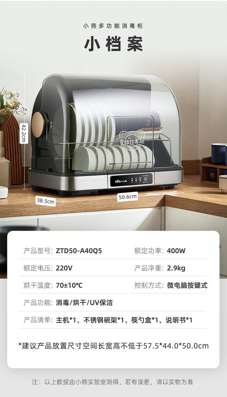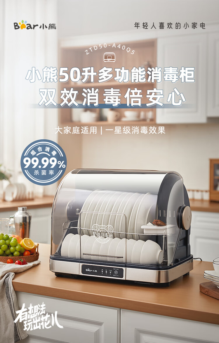 小熊(Bear)奶瓶消毒柜 母嬰奶瓶收納立式家用小型餐具碗筷杯具迷你消毒碗柜保潔柜大容量紫外線殺菌 【50L大容量】ZTD50-A40Q5 自營