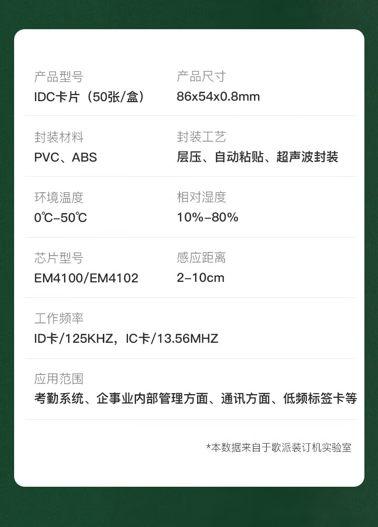 歌派(GEPAD)定制項(xiàng)目配件 IDC卡片(50張/盒)
