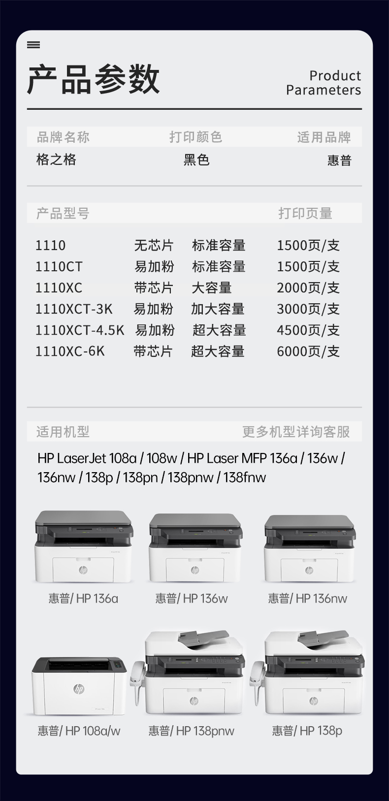 格之格110a硒鼓 惠普136w 硒鼓適用hp136w 惠普136a硒鼓 108a 108w硒鼓 136nw 136wm硒鼓 w1110a墨盒雙支裝 自營