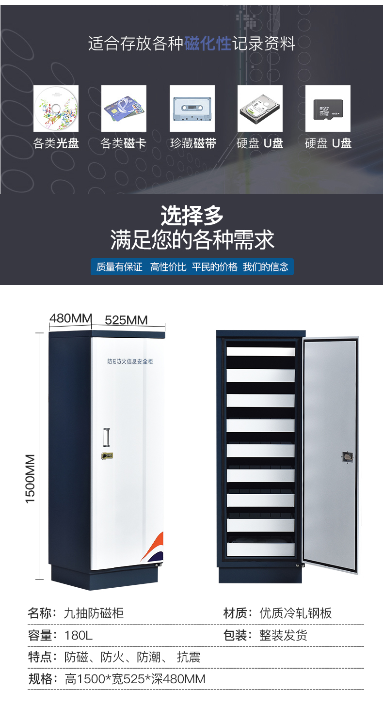 京中柜 磁盤防磁柜防潮防磁保險柜密碼鎖檔案光盤CD安全柜9抽 自營