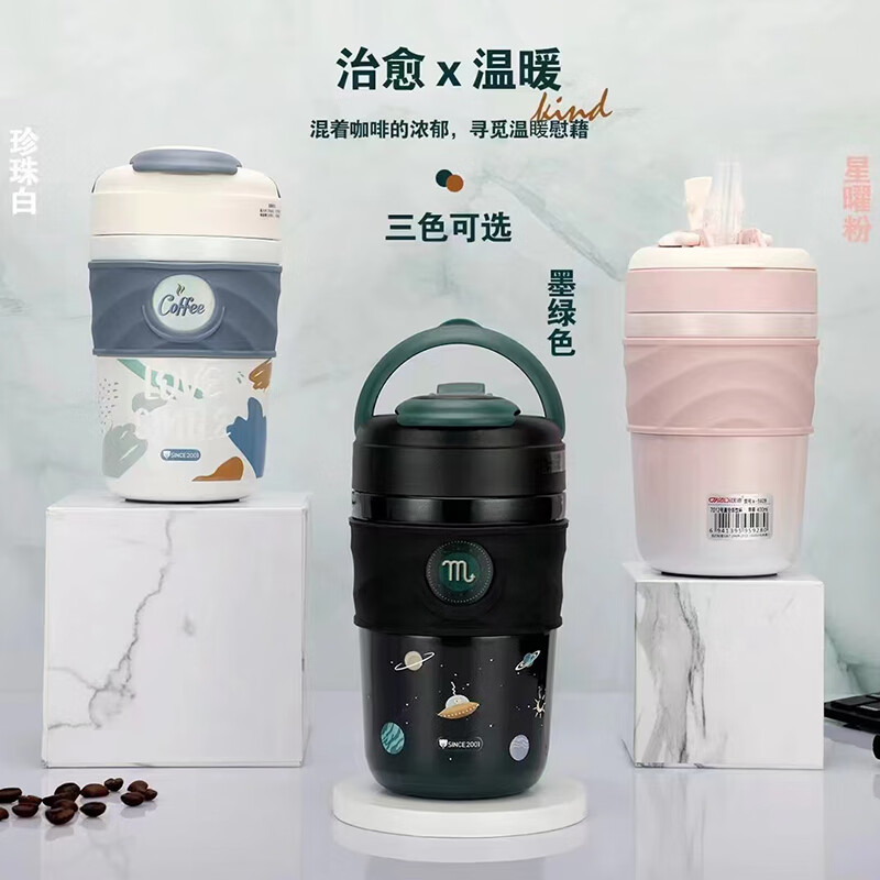 匡迪保溫杯咖啡杯男女士隨行保冷杯高顏值便攜車載大容量吸管水杯 星耀粉400ml 自營