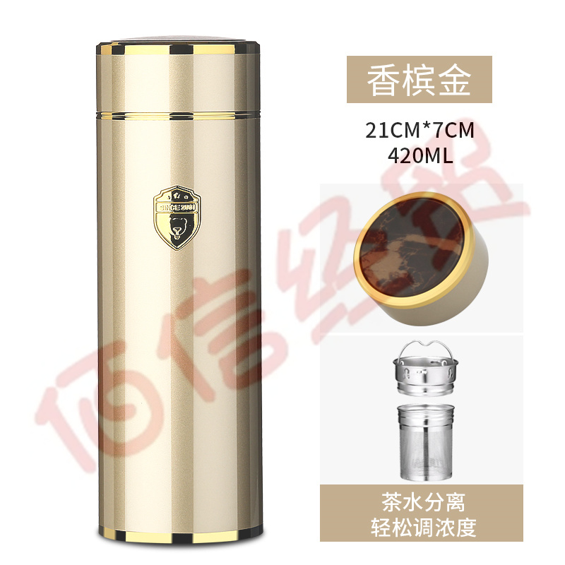 匡迪(DKADI) 匡迪保溫杯水杯不銹鋼真空保溫杯高真空頭內(nèi)304不銹鋼手提繩保溫杯男女 金色 450ml